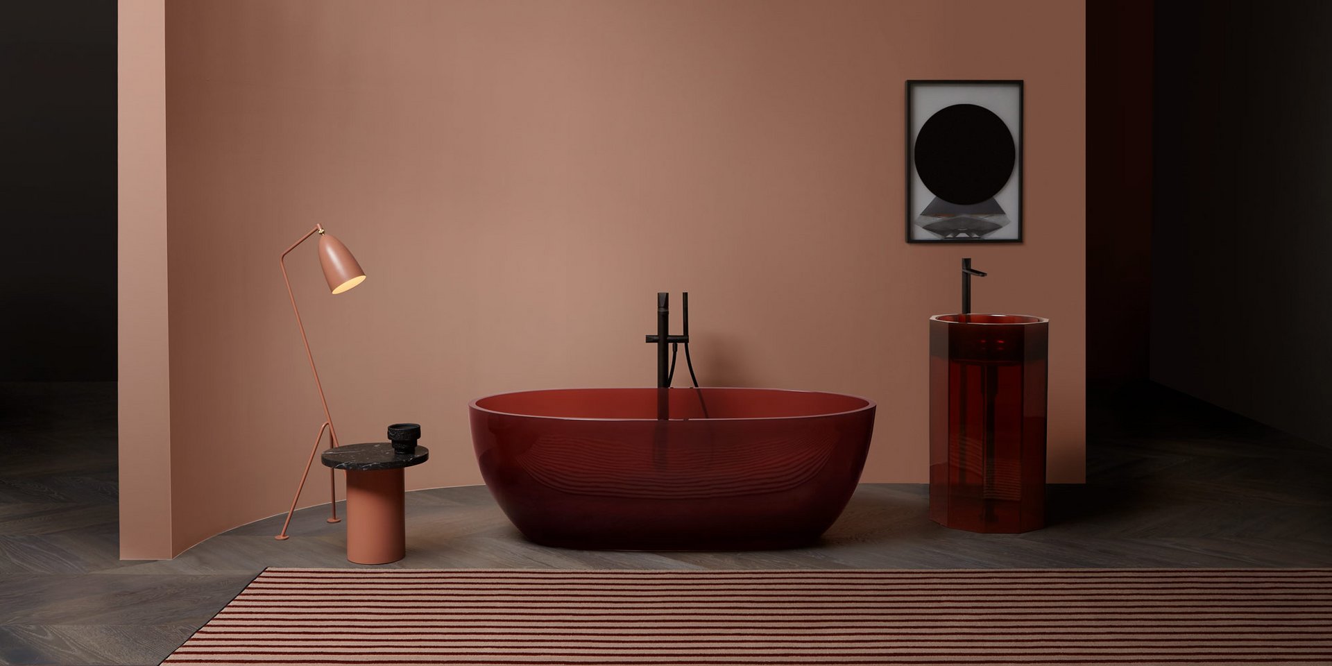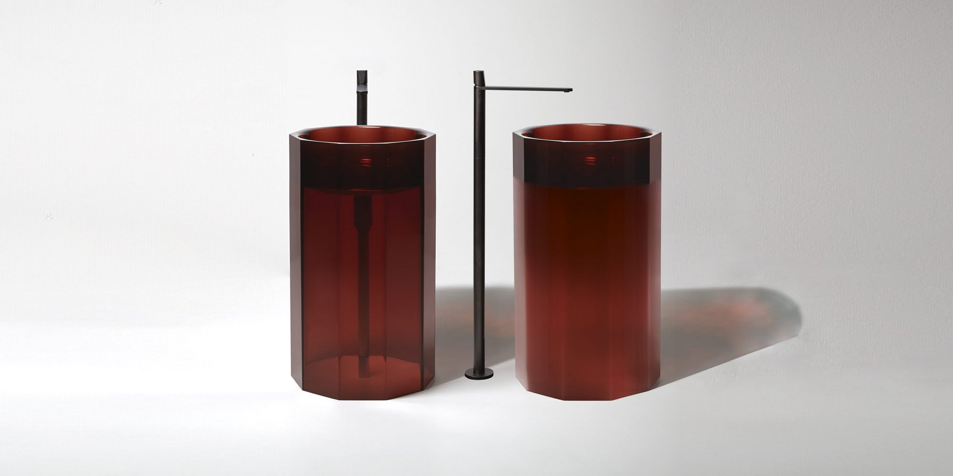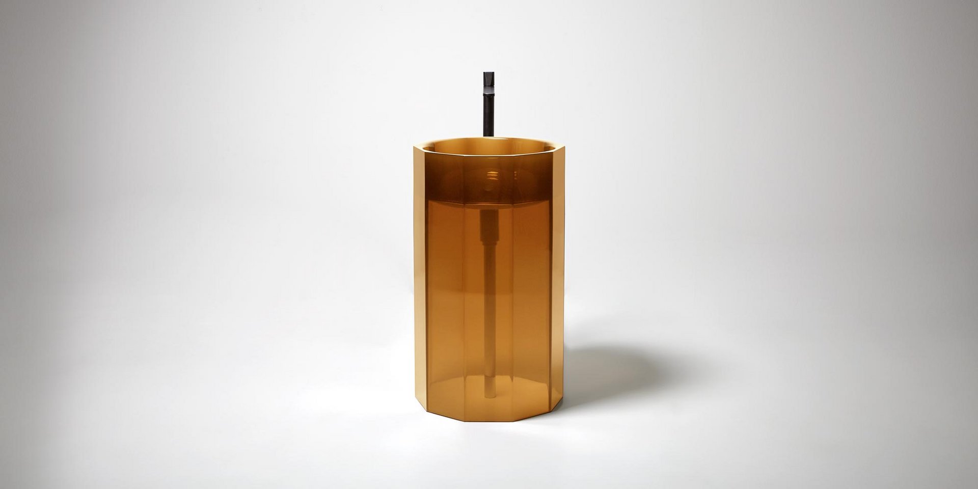 Freestanding Cristalmood sink with floor drainage, available in various colors as per our color chart, complete with pressure plug, siphon and rigid tube.