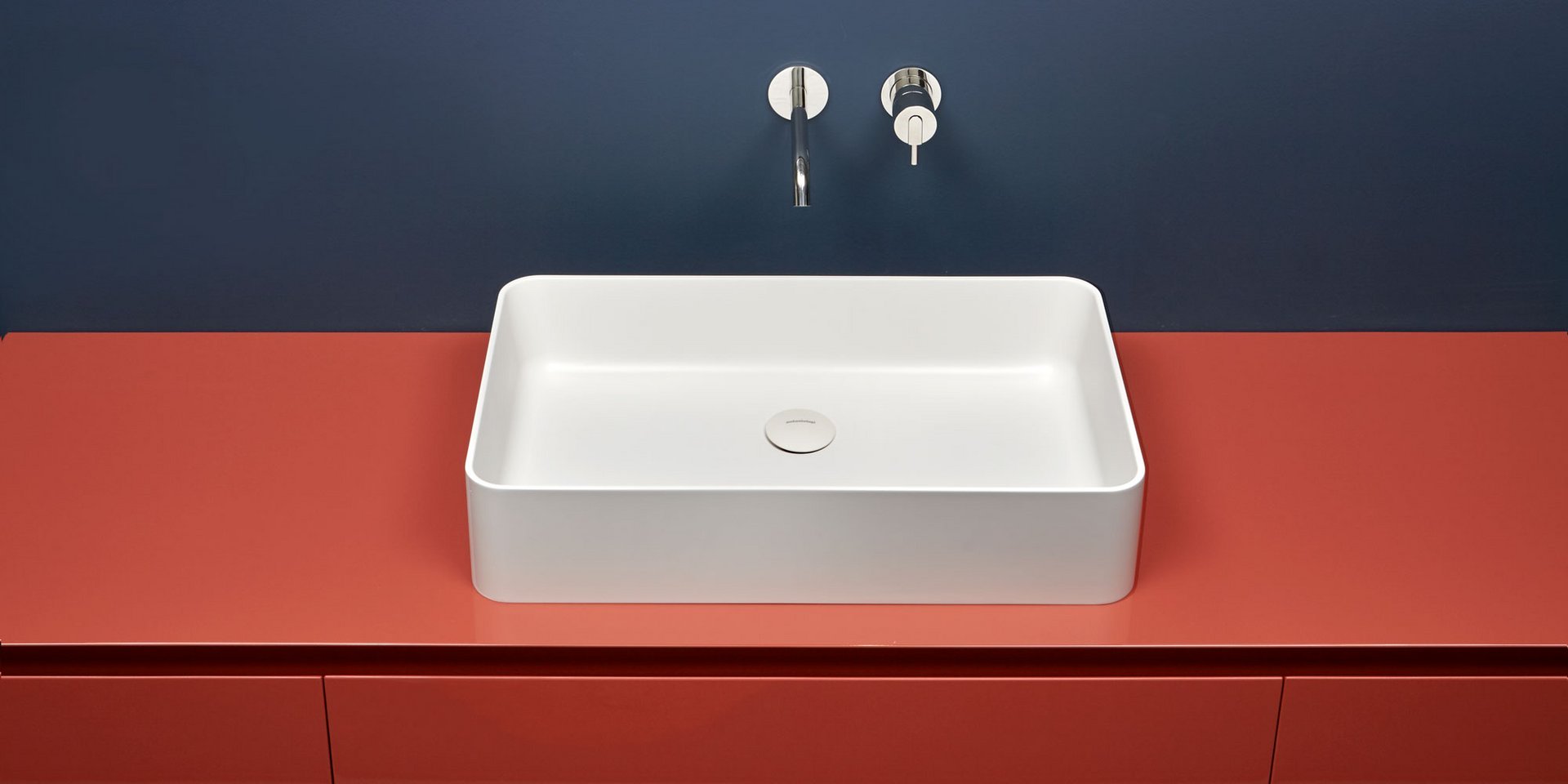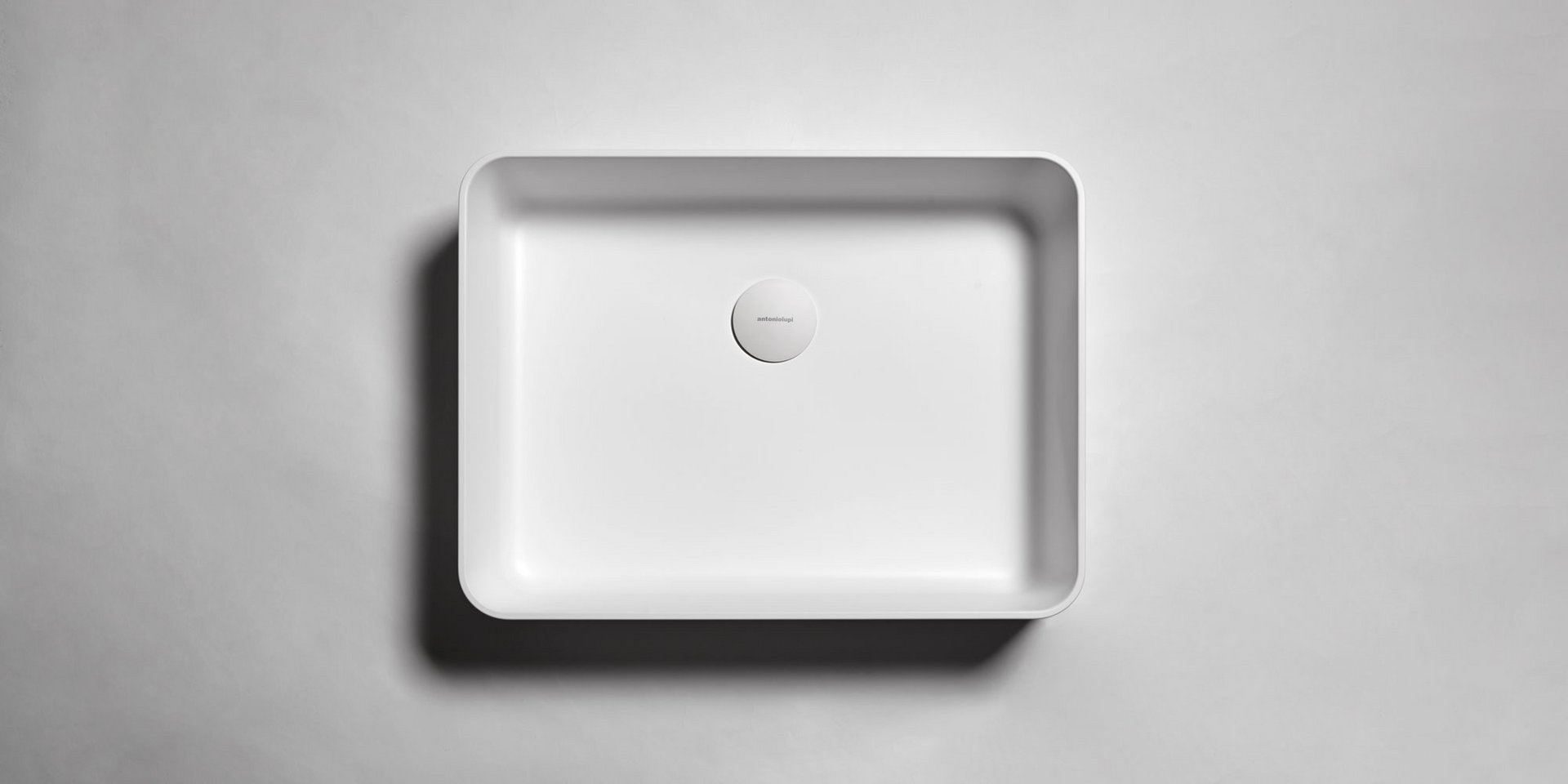 Round top mount Flumood, can be externally lacquered in all colors of our collection or Ceramilux sink complete with drain pipe fitting and open plug.