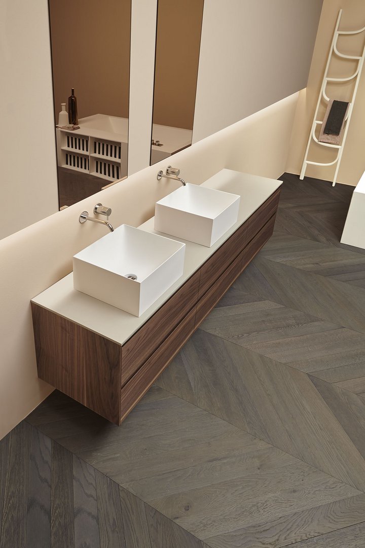 Square top or wall mount Flumood sink, complete with drain pipe fitting and open plug. Can be lacquered externally.