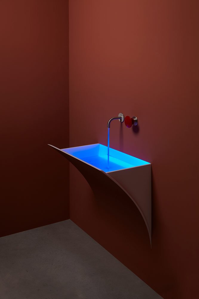 Encased Corian sink with or without led lighting, complete with inspectable drain, trap and flexible hose.