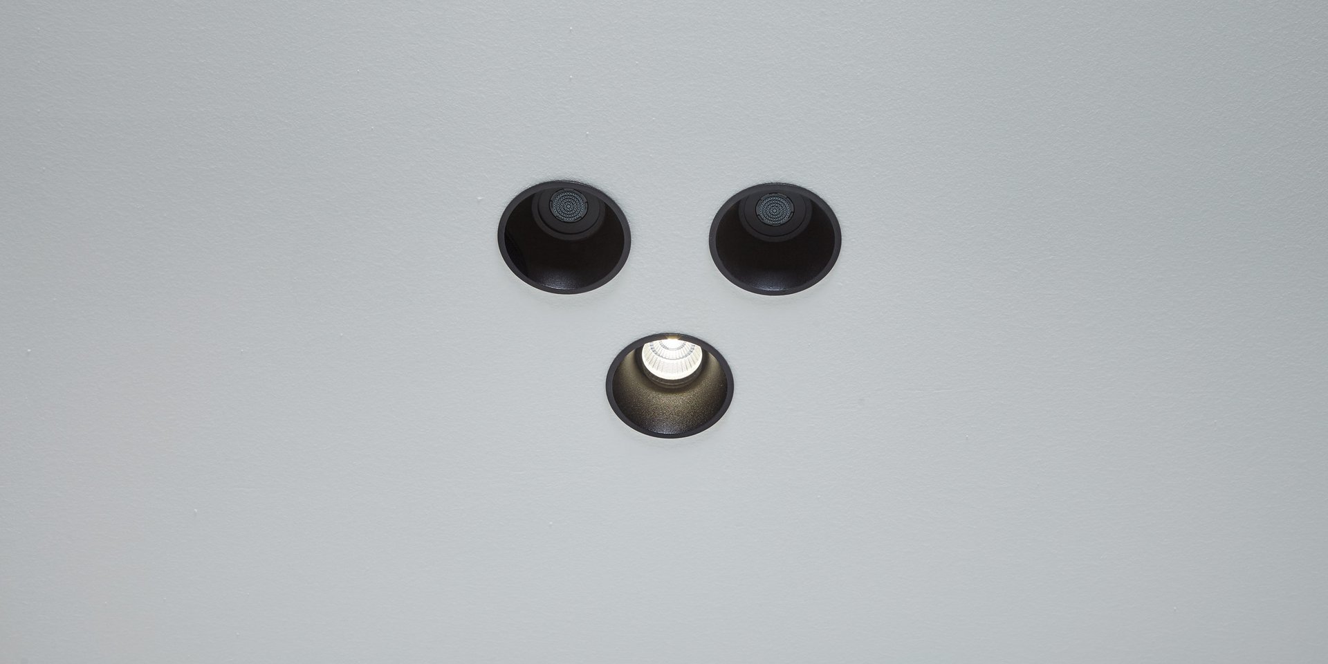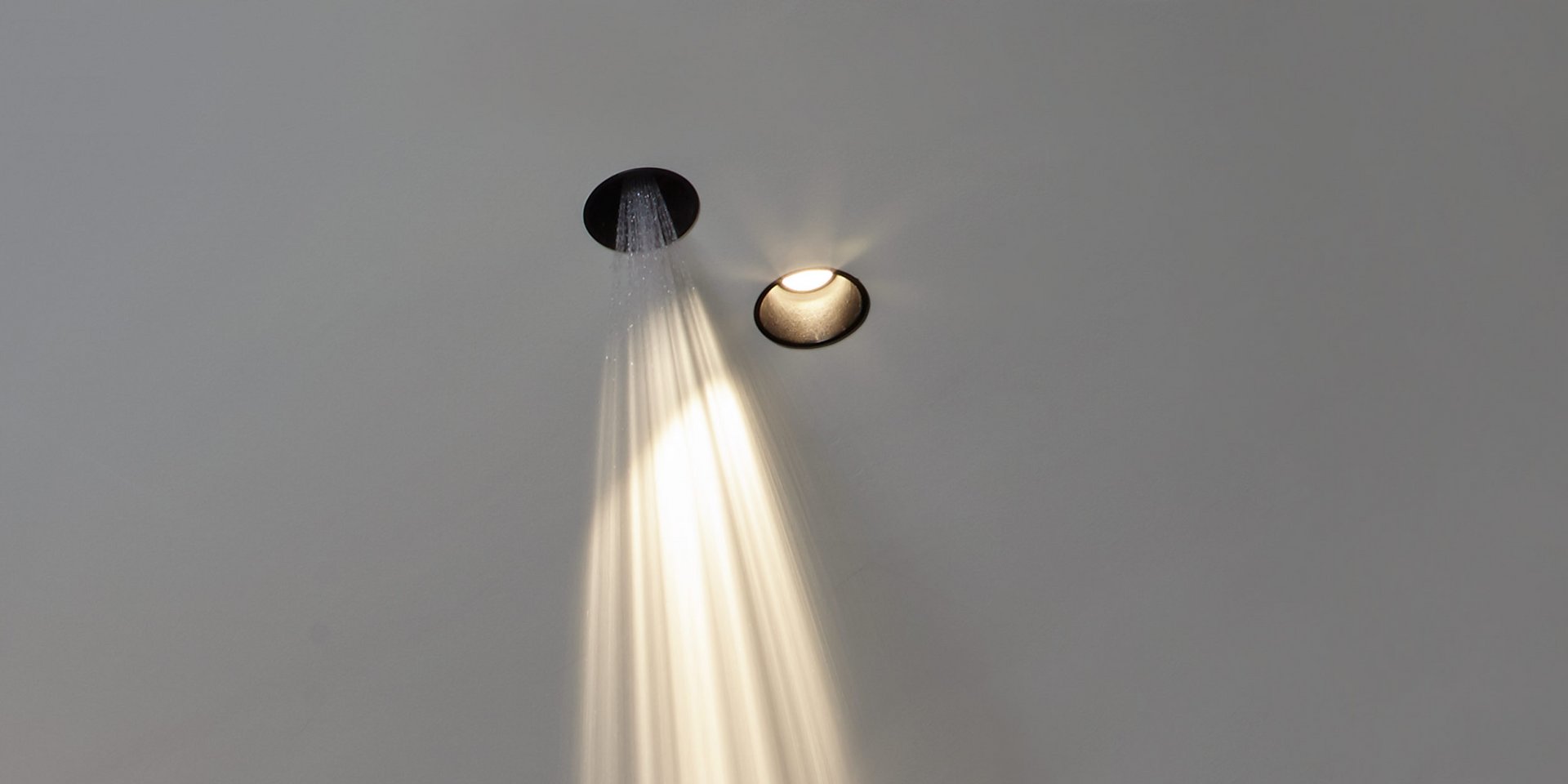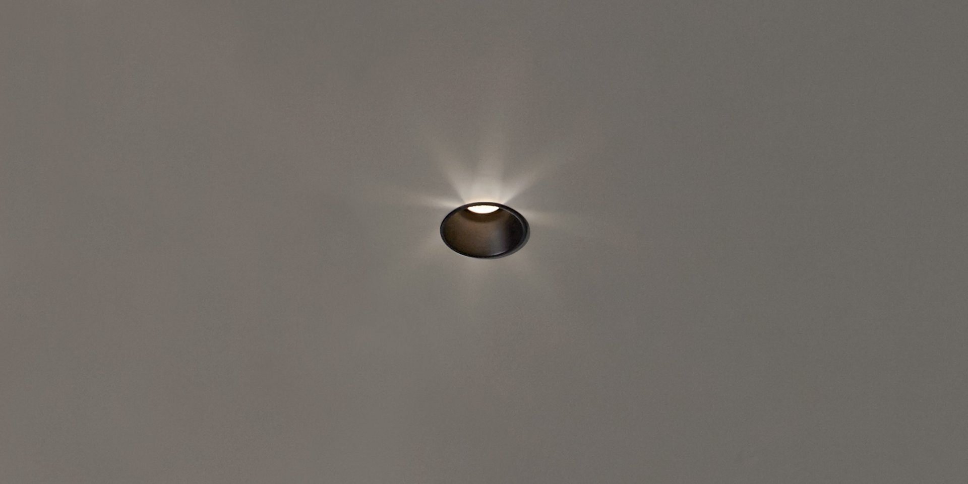 Lamp with ceiling encasing structure in black aluminum and led lighting.