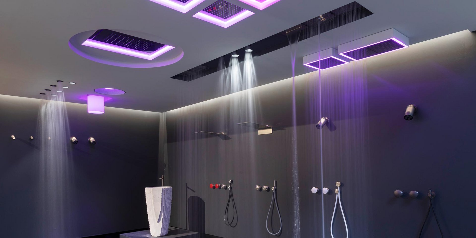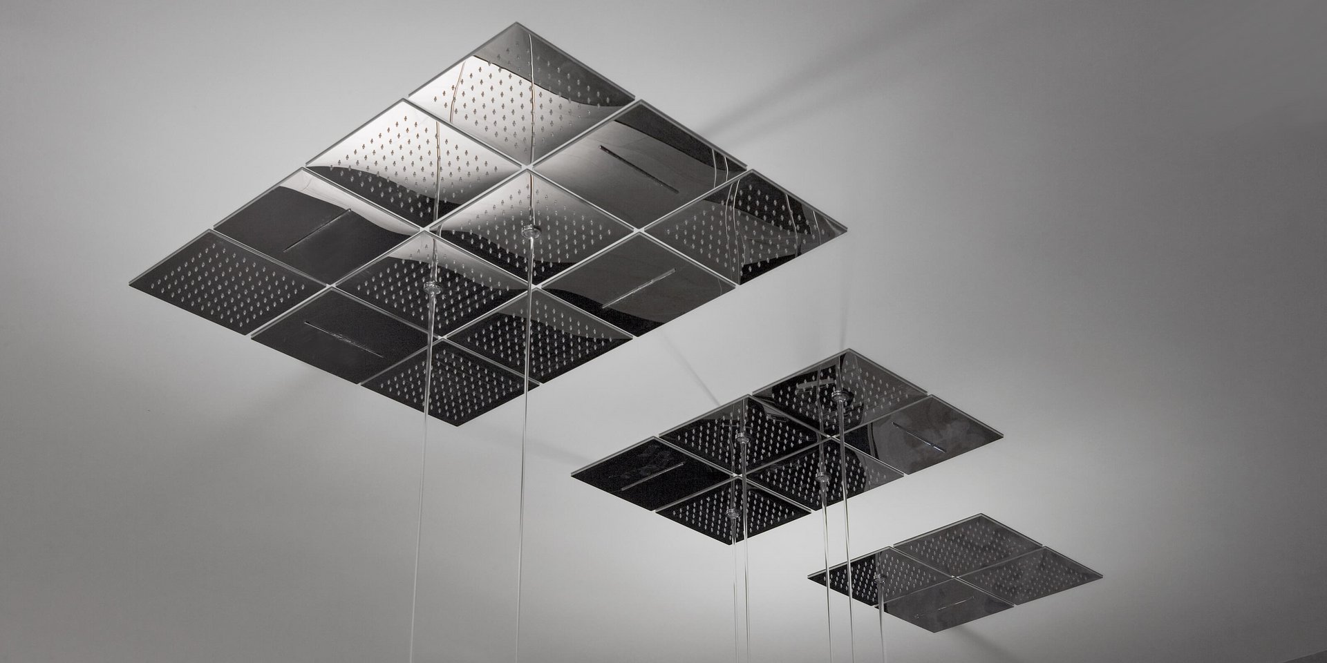 Encased modular showerhead with hard center jet in polished stainless steel AISI 304.