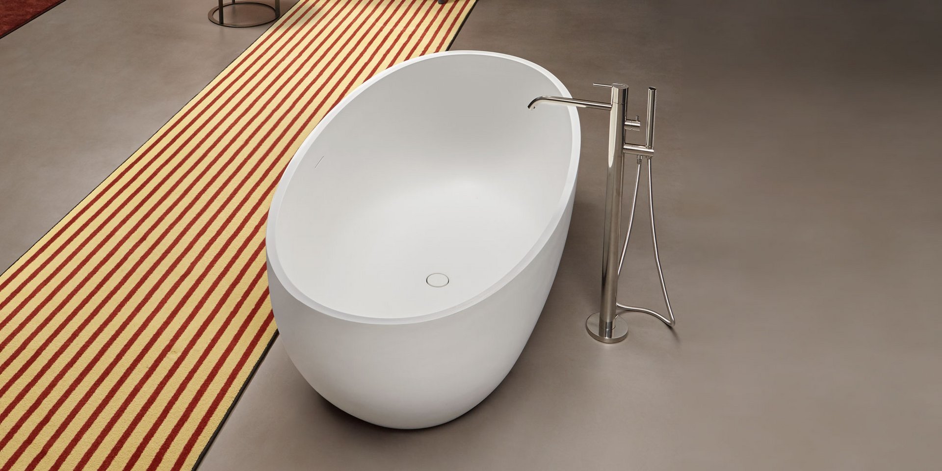 Oval Flumood bathtub, can be externally lacquered in all colors of our collection, complete with drain and pressure plug, siphon and flexible hose.
