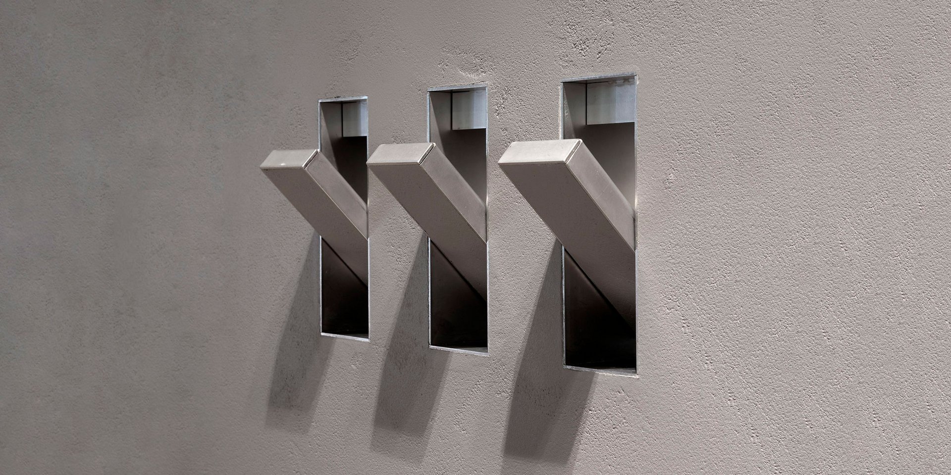 Encased wall hook in stainless steel AISI 304 with an aluminum finish.
