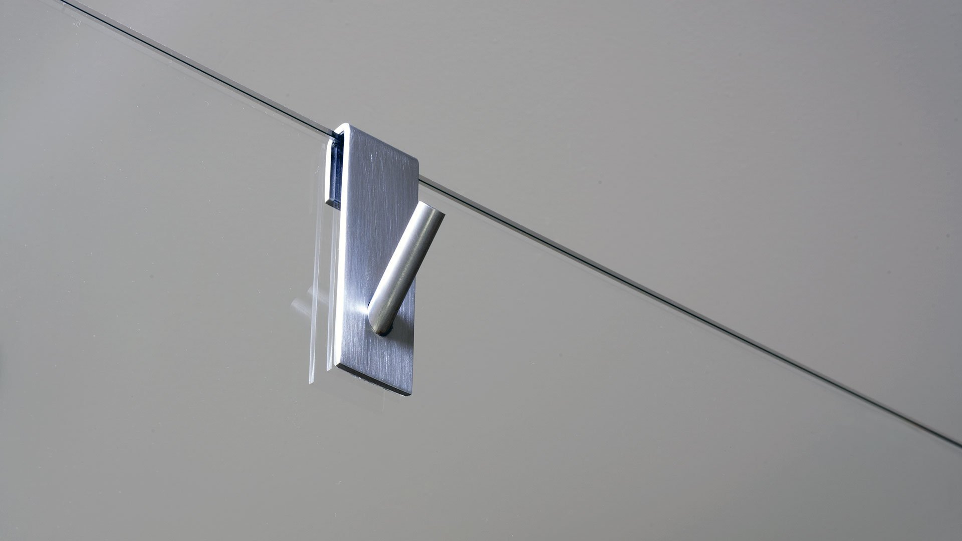 Single clothes hook in satin stainless steel AISI 304 suitable for shower enclosures.