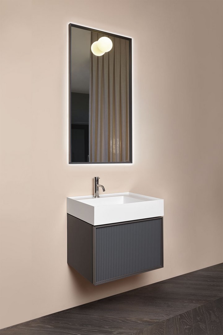 Led lamp in sand blasted pyrex glass with aluminum support complete with bulb.