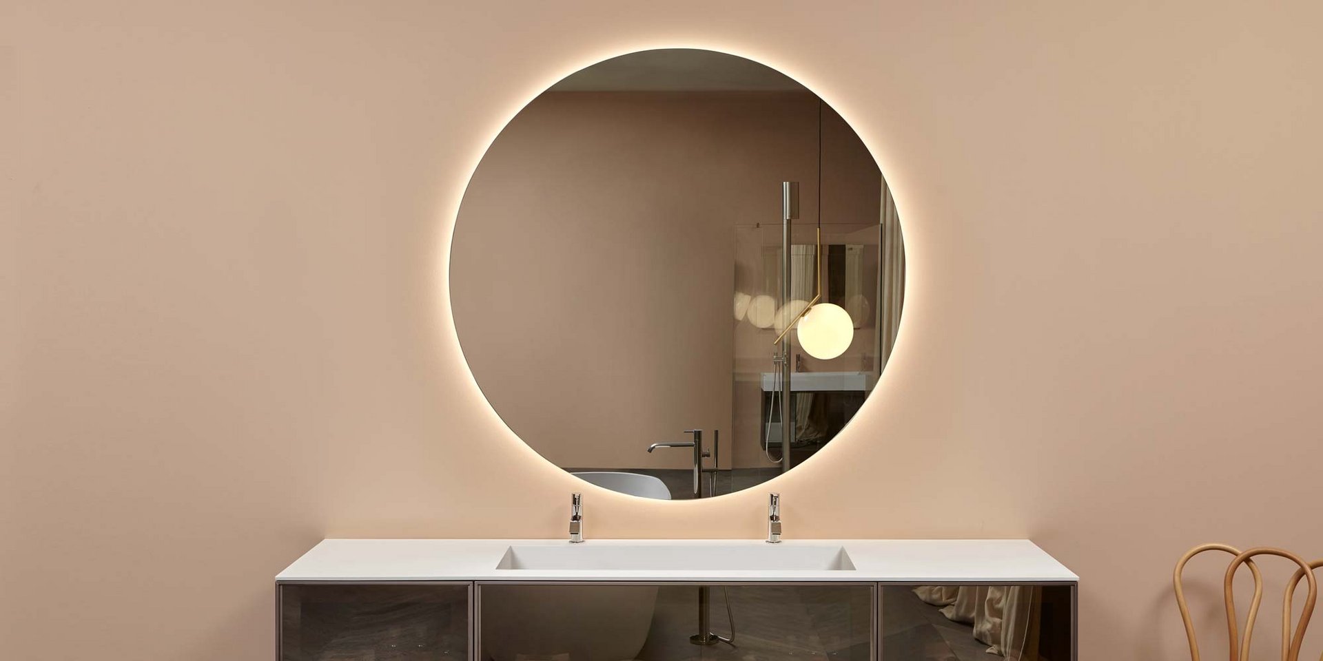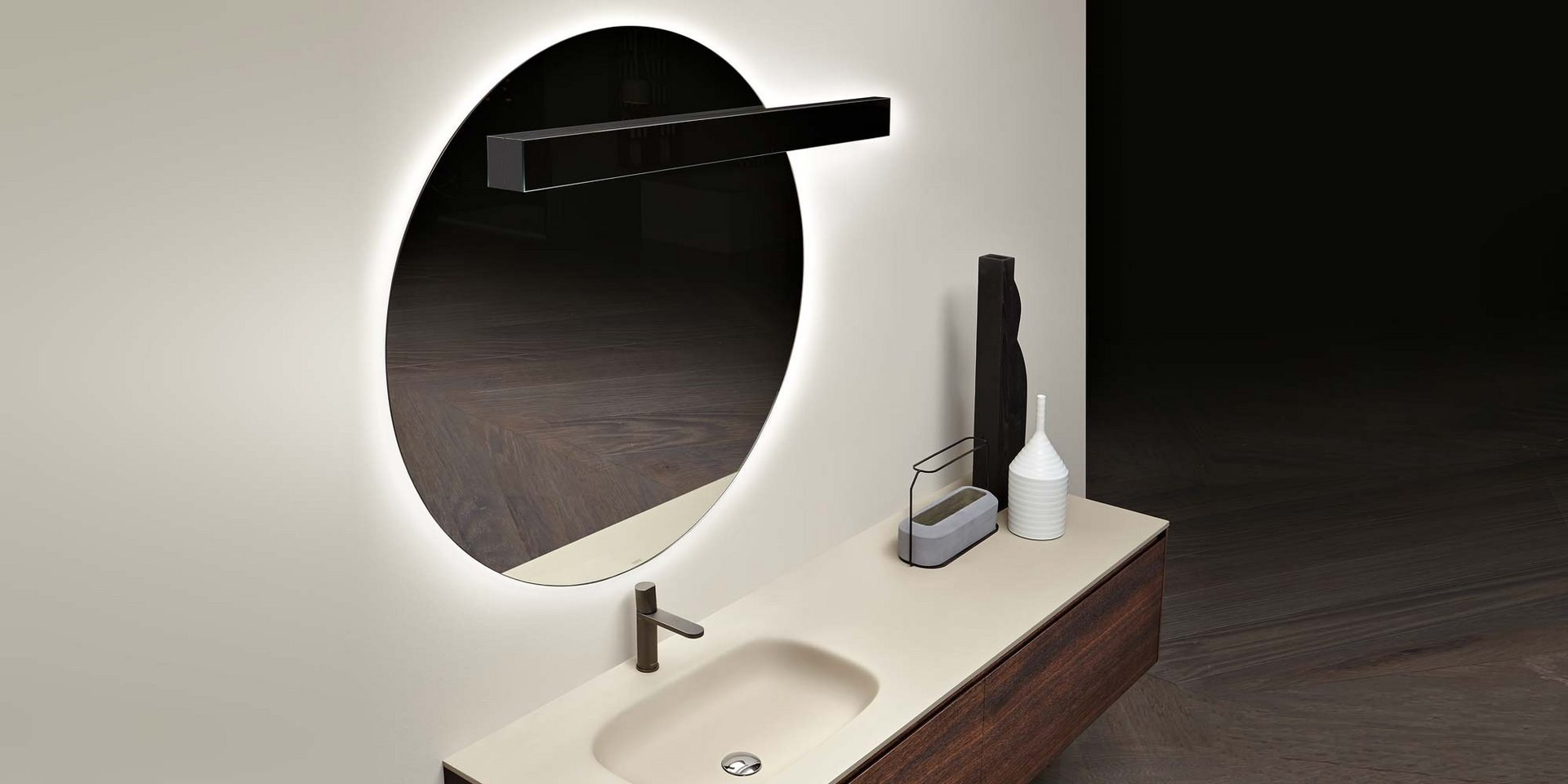 Polished edge mirror 5 mm thick with white led lighting, complete with frame and lamp LUCENTE, right or left hand version.