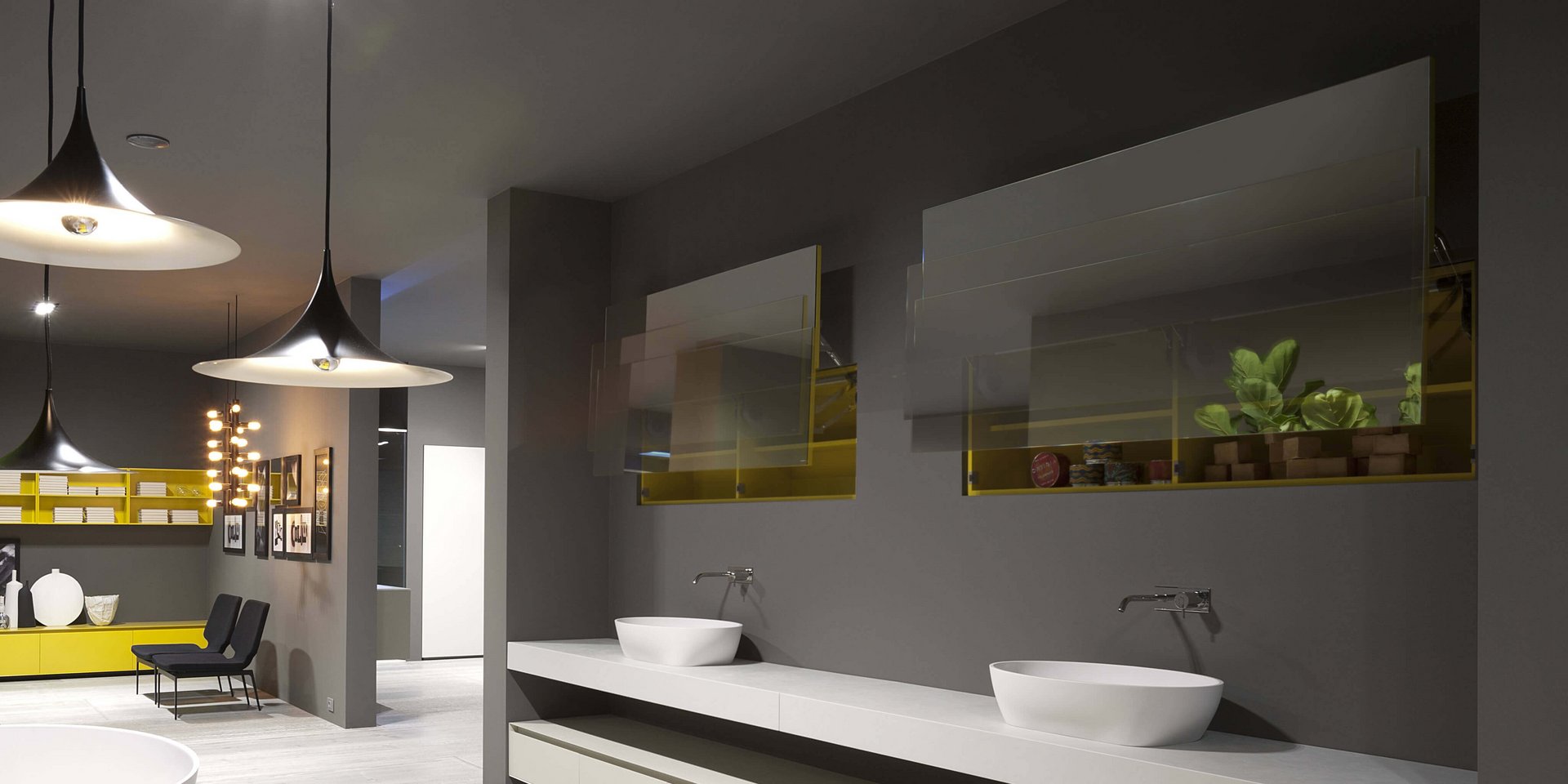 Wall cabinet with vertical electrical flap-opening mirrored door. Upon request it can be produced with internal led lighting.