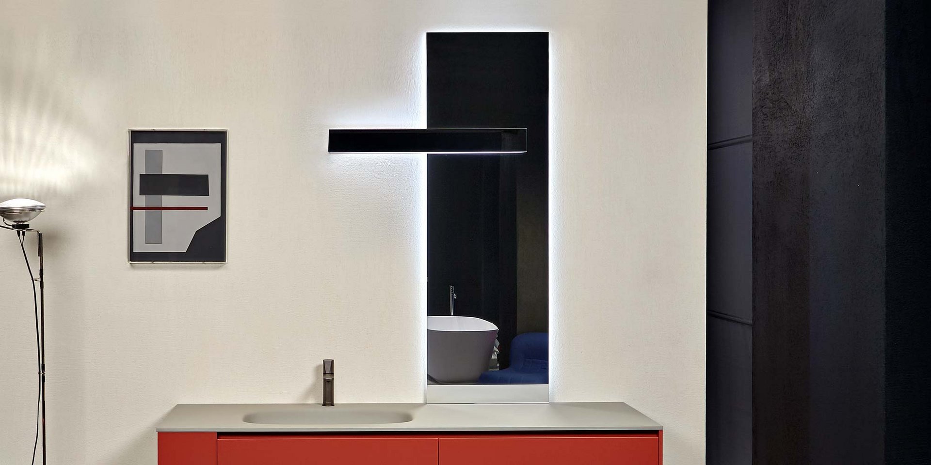Polished edge mirror 5 mm thick with white led lighting complete with frame and lamp LUCENTE, right