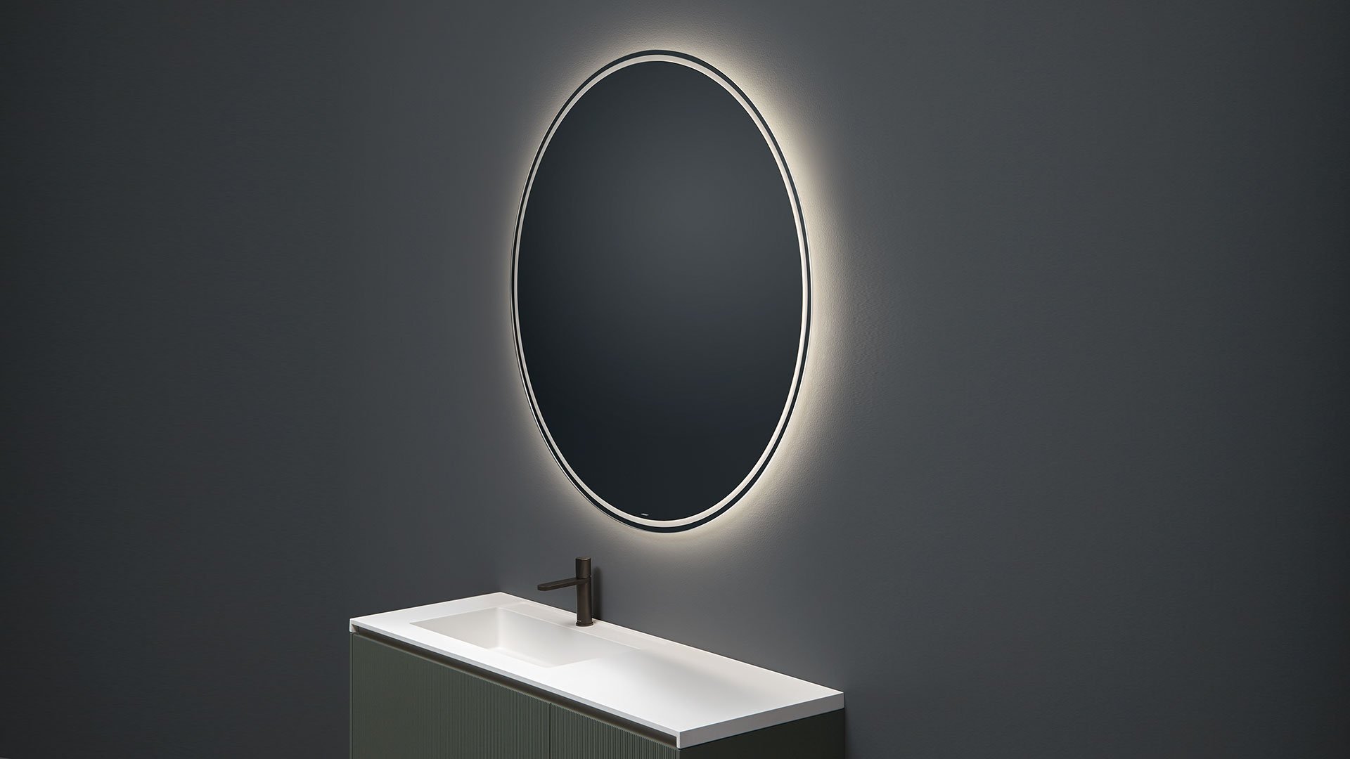 Polished edge mirror 5 mm thick with white led lighting, complete with black frame.