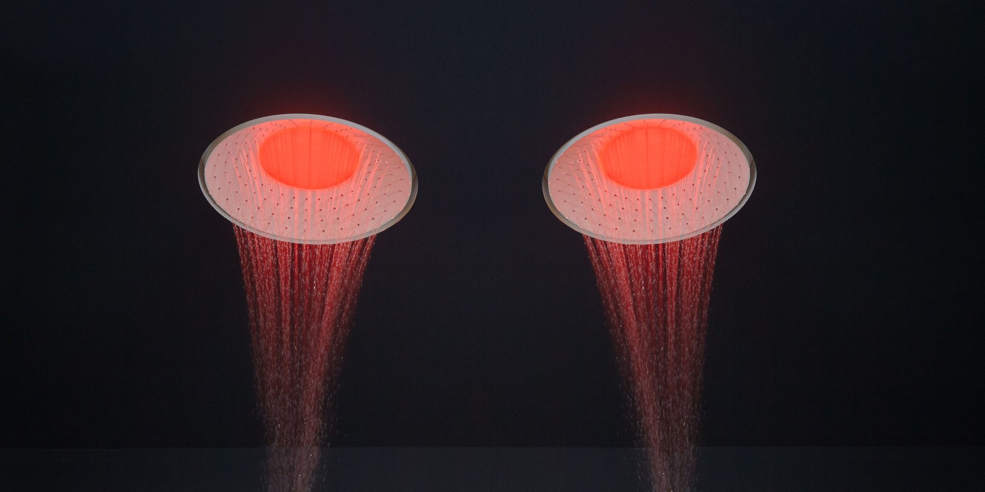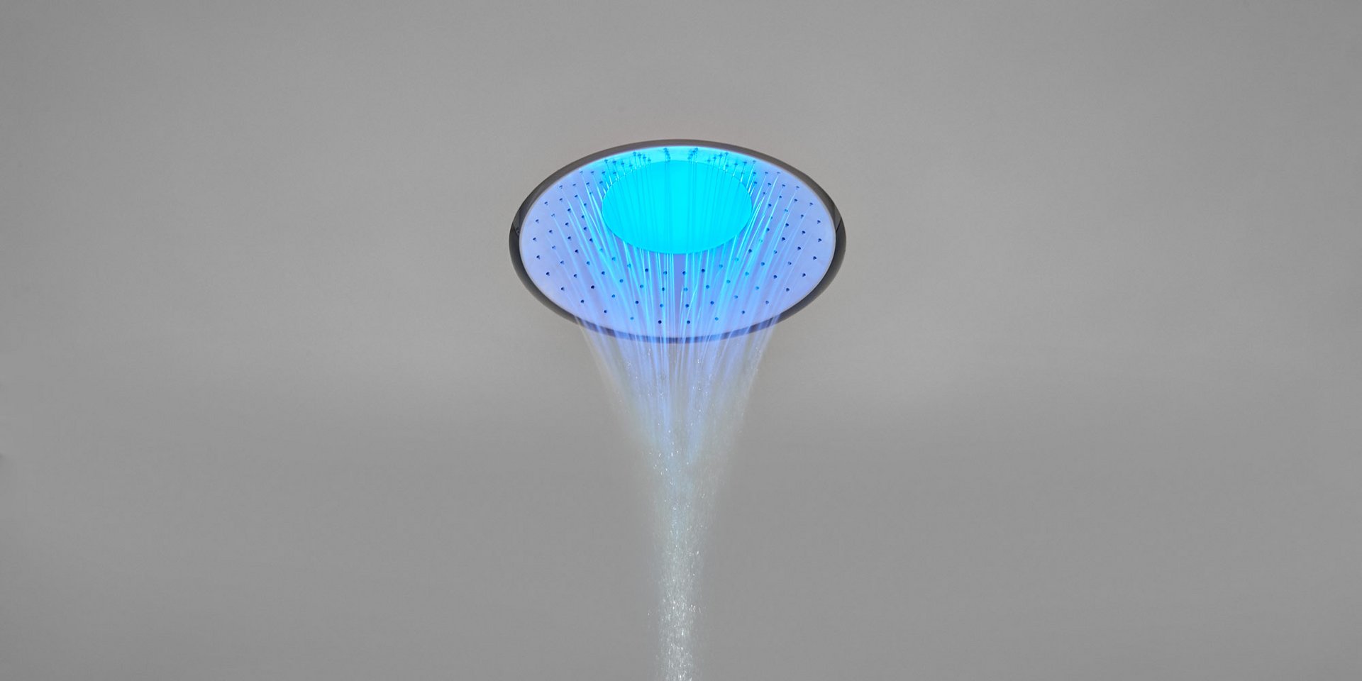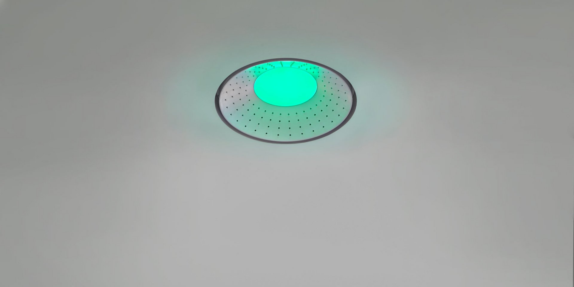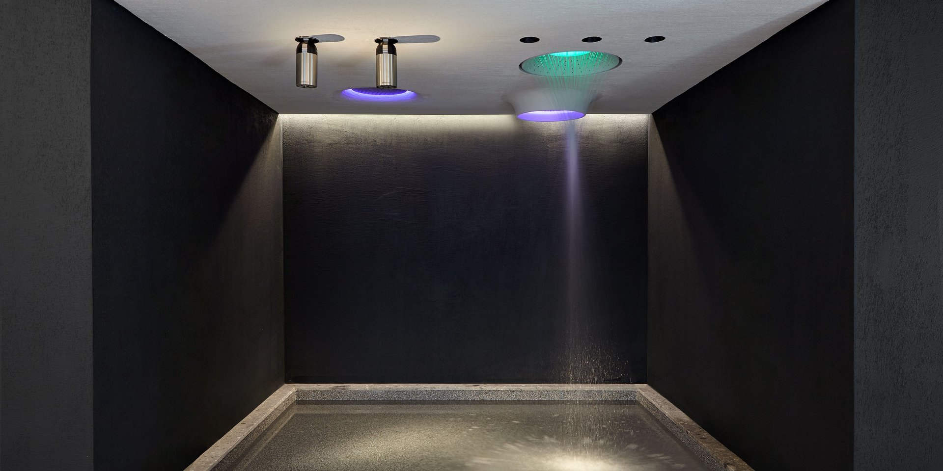 Ceiling encasing structure in AISI 304 lacquered white with LED RGB lighting complete with waterproof remote control.