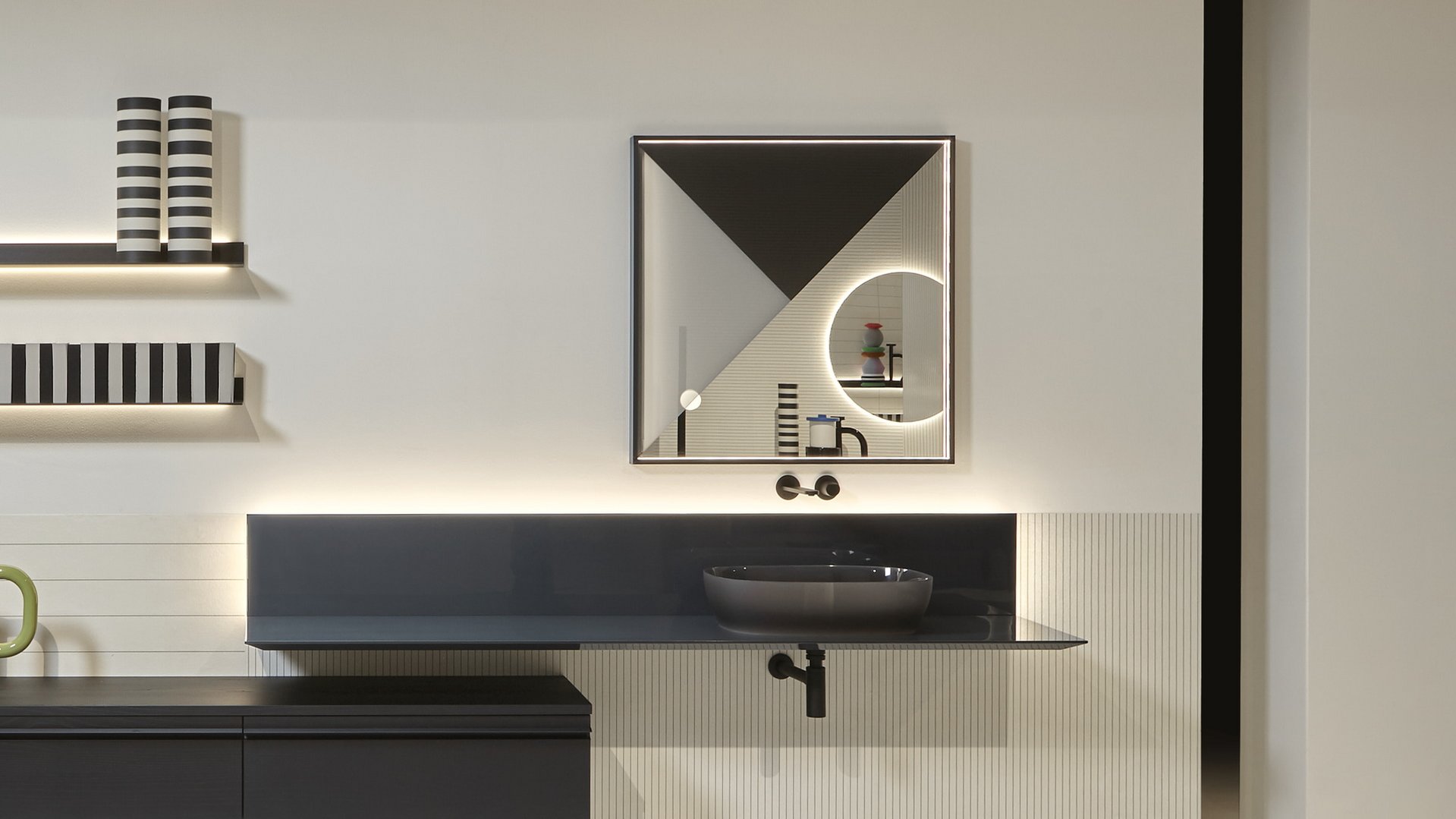 METRICA 具有通過三角形疊加獲得的節(jié)奏結(jié)構(gòu)。黑色和煙色玻璃與鏡面交替,營(yíng)造出詩(shī)意的視覺構(gòu)圖。METRICA 的結(jié)構(gòu)將節(jié)奏方面延伸到承載它的建筑結(jié)構(gòu),產(chǎn)生了正式的作曲對(duì)話。