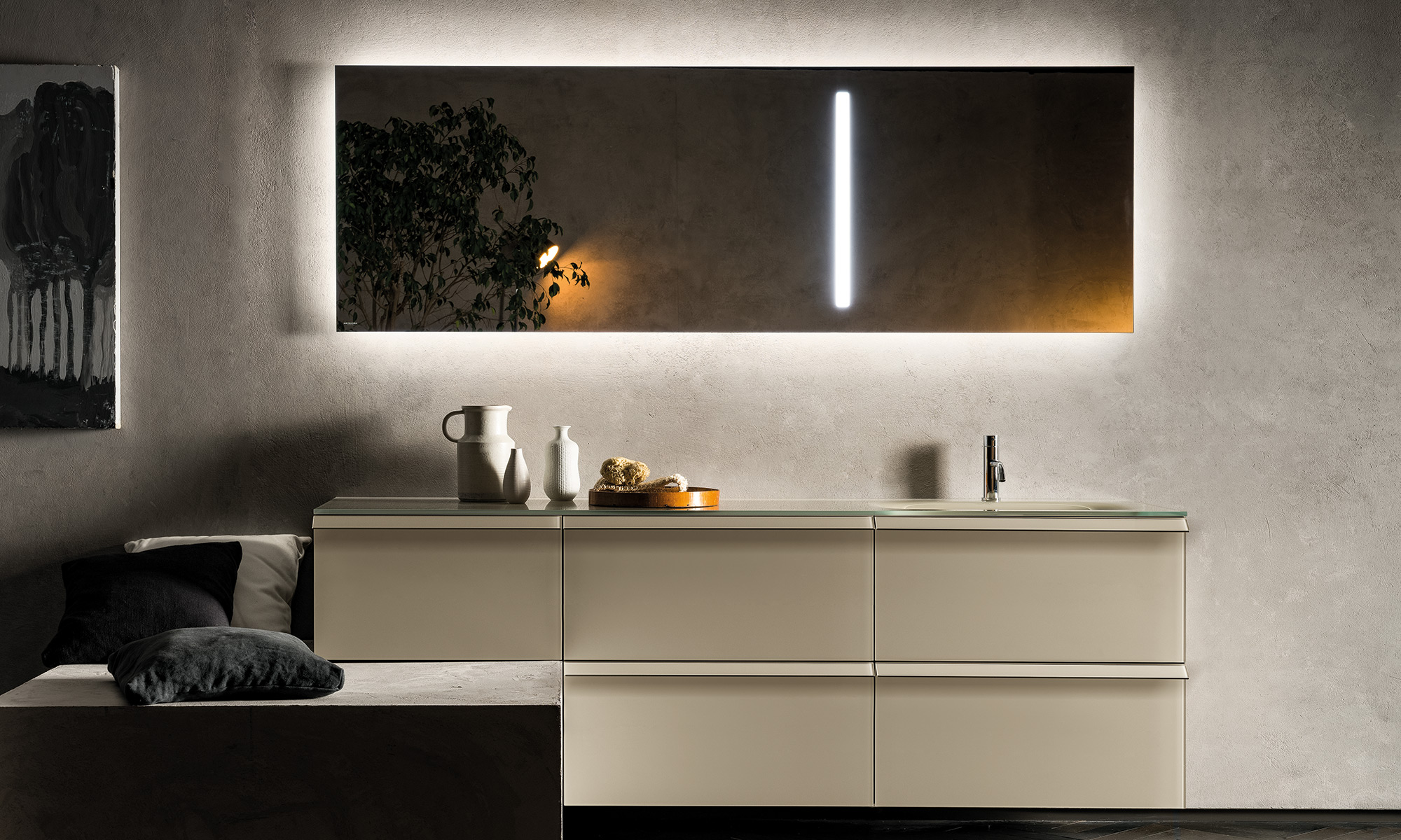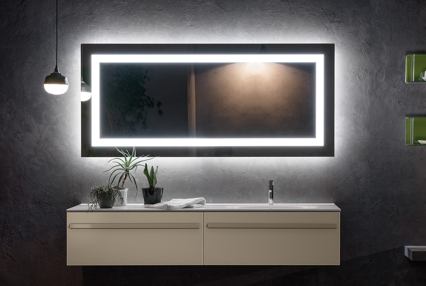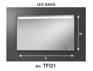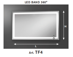 specchio 5 mm filo lucido con luce interna a led (LED BAND), trasformatore 220/12V completo di telaio.