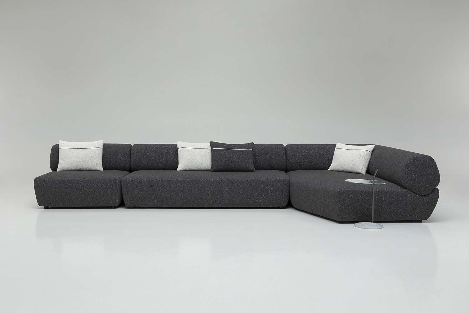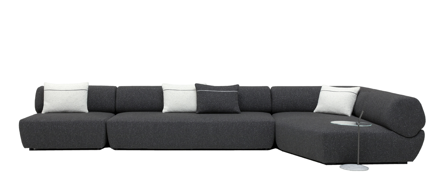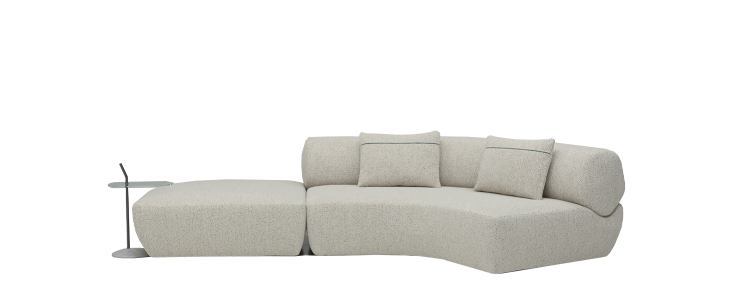 Yabu Pushelberg’s Naviglio collection is composed of a curved, linear, chaise longue and ottoman elements that together express a visual dialogue between structure and form. The synthesis is the project’s essence and starts from its name. Watercourses are places of meeting and confluence, a synthesis of trade and leisure, human intervention and contact with nature. This was the starting point for the designers George Yabu and Glenn Pushelberg for their first partnership with B&B Italia. In the Canadian designers’ vision, the seating base is a riverbed that defines the space to accommodate a backrest/armrest which is as sinuous as a watercourse. Yabu Pushelberg’s design builds a relationship between organic forms and B&B Italia’s moulding technologies to create a consistent and univocal whole. As a piece of a puzzle, the B&B Italia team has ergonomically designed each shape to achieve a single cohesive unit. The backrest section and the seating shapes reveal a delicate balance between polygons and curved shapes, where geometry becomes softness and rigour blends with comfort. The backrest originates from a round shape, but it is actually an irregular polygon with rounded edges - both an amazing and reassuring detail.