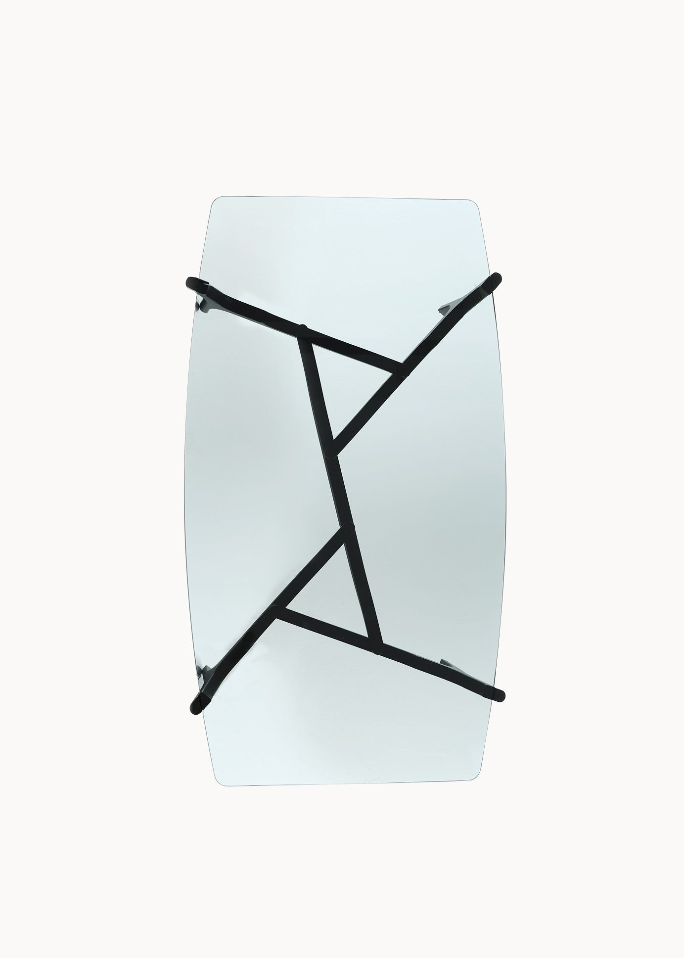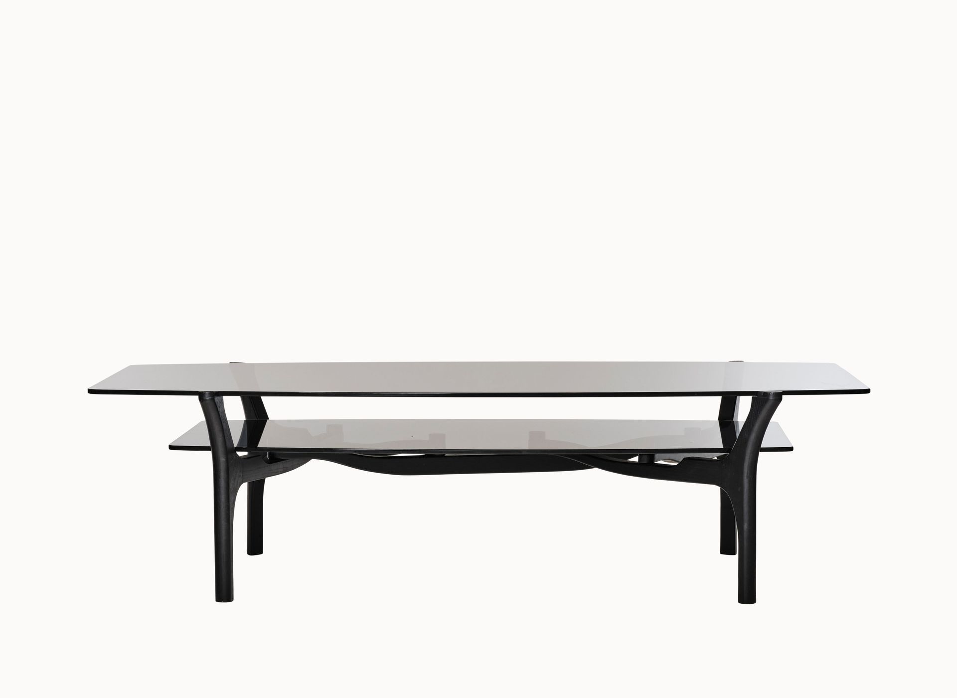 Cheekily calling to Carlo Mollino’s greater influence on Oscar Tusquets, these tables were named Carlinas. Their clear surface exposes the now-visual supporting structures. Like Mollino’s nature-informed pieces, the Carlinas boast punctuating twisting stretchers that hold the smoked glass tabletop.