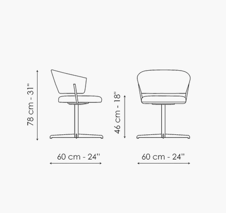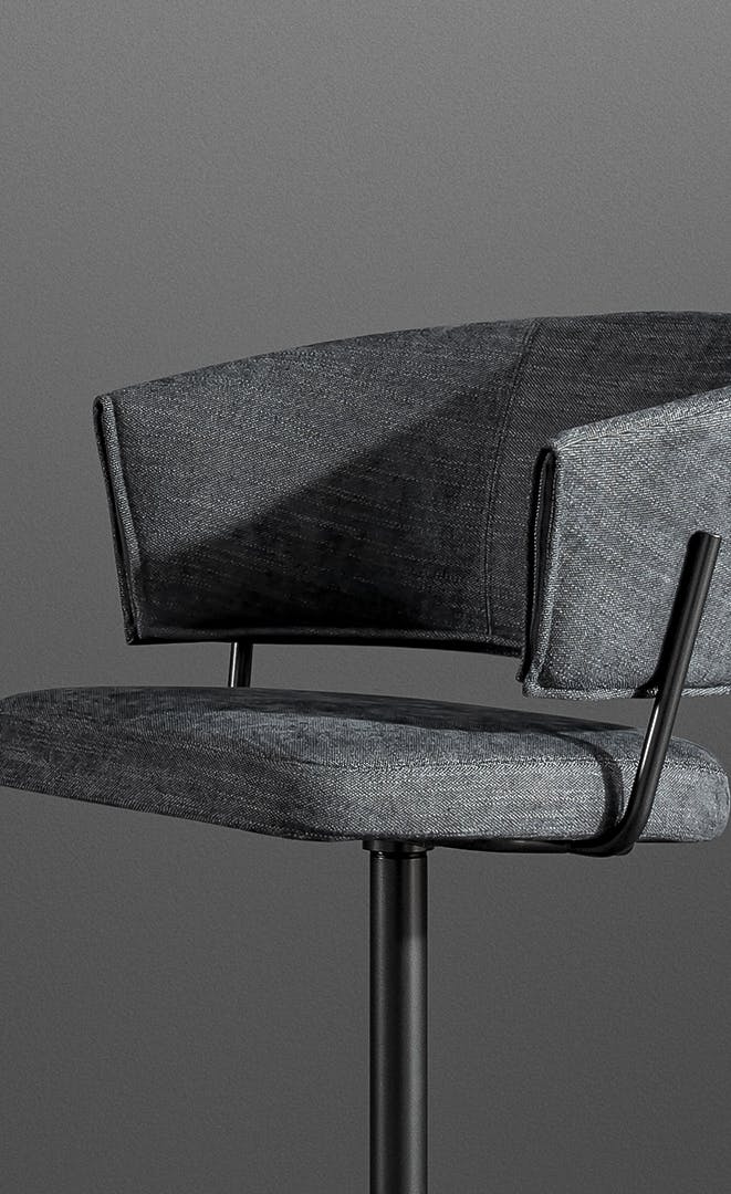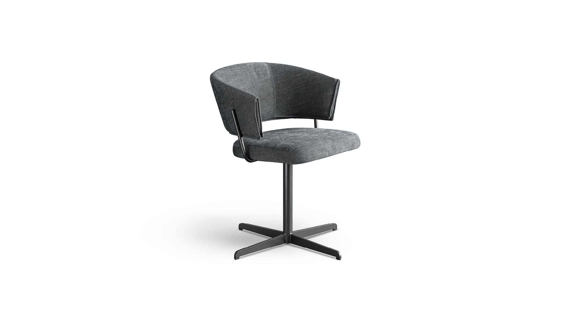 The Bahia Office chair maintains the principal stylistic features that set Mauro Lipparini's design apart, starting with the lightness of the figure and the enveloping comfort of the semi-circular armrests. The main distinguishing factor of this padded office chair is the support, formed by a revolving radial base with four feet. The Bahia Office is available with upholstery in fabric, leather or eco-leather.