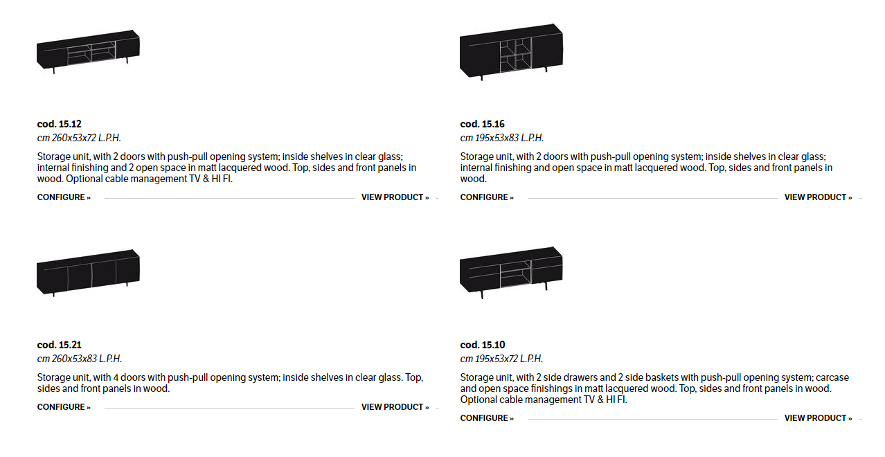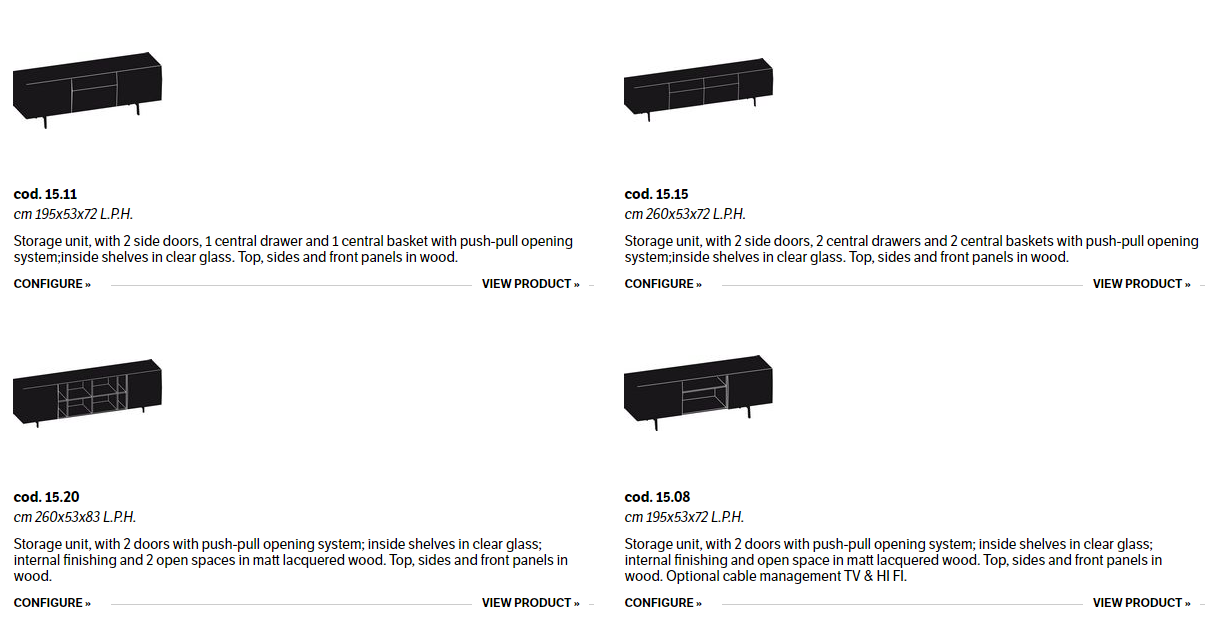 Wooden storage unit available in two different heights: cm 72 and cm 83, with doors, drawers, baskets or open spaces.
