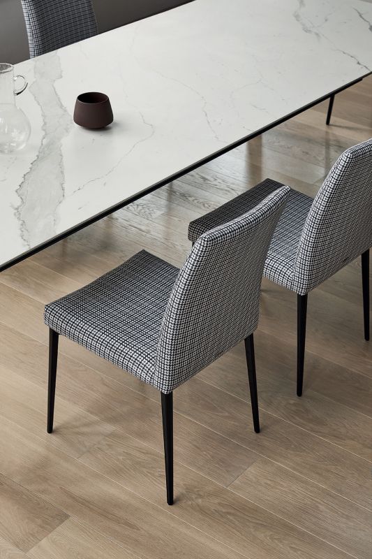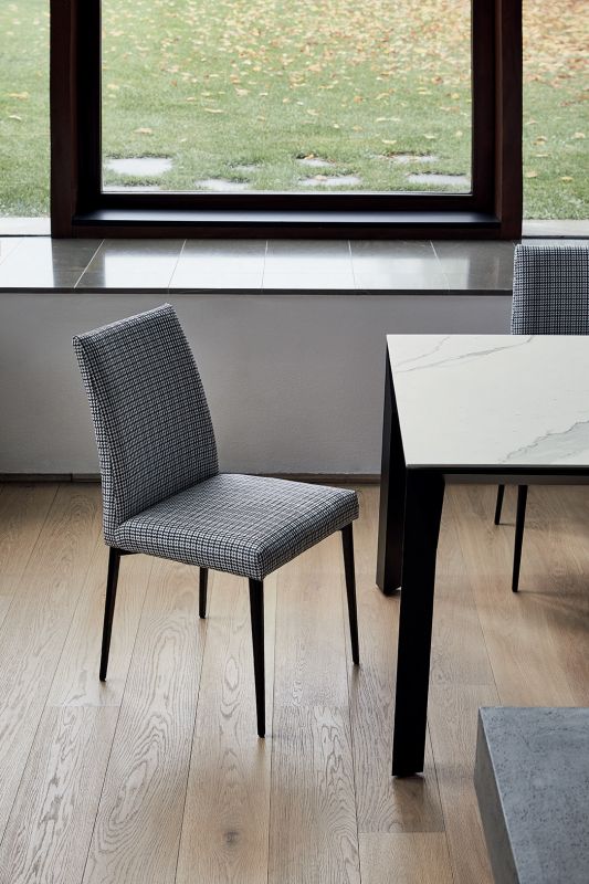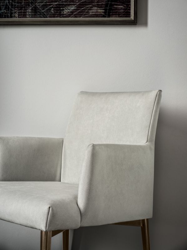 Chair with Metal frame. Seat and back padded and upholstered.