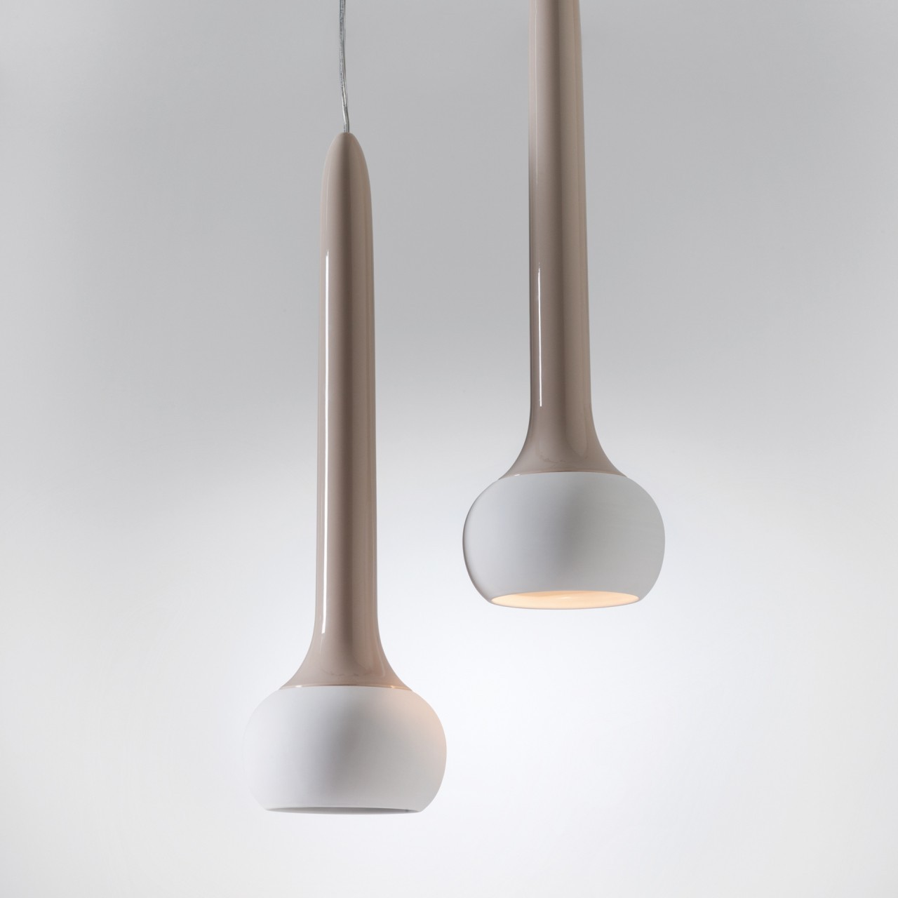 Jachin è una lampada da soffitto che allude ad una torcia ed è realizzata in ceramica bianca e colorata.