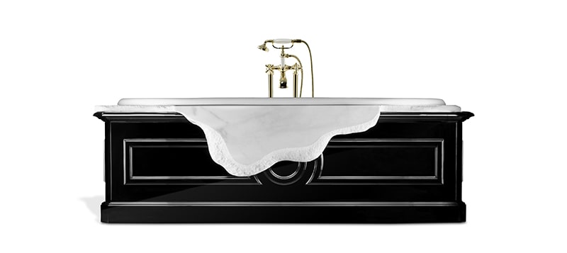 This bathtub combines Ibiza marble and wood and is inspired by the ancient city of Petra, where buildings are directly carved in stone cliffs. The black gloss looks of the wood matching the different shades of white turn this piece into one everlasting exclusive visual experience for the most luxurious bathrooms.