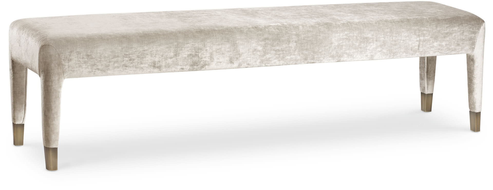 Il telaio è in legno massello, completamente imbottito e rivestito. I puntali, estetico funzionali, sono in ferro, decorato in oro o bronzo. Il rivestimento, non sfoderabile, è realizzato in tessuto, velluto, pelle o con un tessuto/pelle fornito dal cliente. Perfetta come fondo letto in camera.