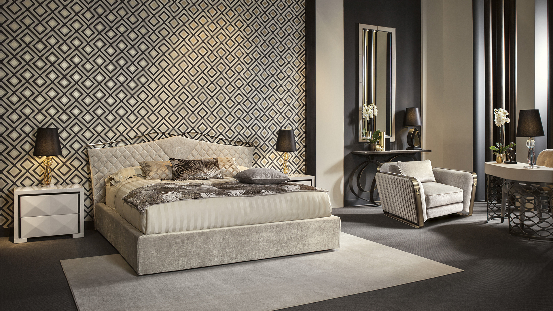 La base è in bronzo realizzata con la decorazione classica Cantori. La morbidezza dei rivestimenti e l’esterno trapuntato, realizzabili anche con un tessuto fornito dal cliente, si contrappongono alle fasce in bronzo dei braccioli laterali che, intersecandosi sul retro, creano un forte segno grafico. Una poltrona con un’ambivalenza di stili: si adatta ad un ambiente moderno, e si integra perfettamente in uno classico. Un comfort completo grazie alle due misure disponibili.