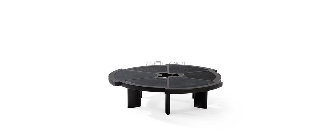 Attualmente disponibile in una sola misura, il tavolino Rio fu inizialmente ideato dalla Perriand in due diverse dimensioni. Tra il 1962, anno di progettazione, e il 1967 l’autrice adattò il modello e ne ampliò il volume per la versione destinata all’Ambasciata del Giappone a Parigi. La sua bellezza inconsueta e la sua grande funzionalità lo rendono una vera e propria opera di decoro, caratterizzata da sei spicchi di diverso raggio, accostati ma sfalsati, che creano un bordo esterno in massello articolato e un foro centrale concepito come centro di gravità spaziale. Cassina riedita il modello originale del 1962, riproducendolo nella forma originale grazie alla straordinaria capacità manuale degli artigiani di Meda.