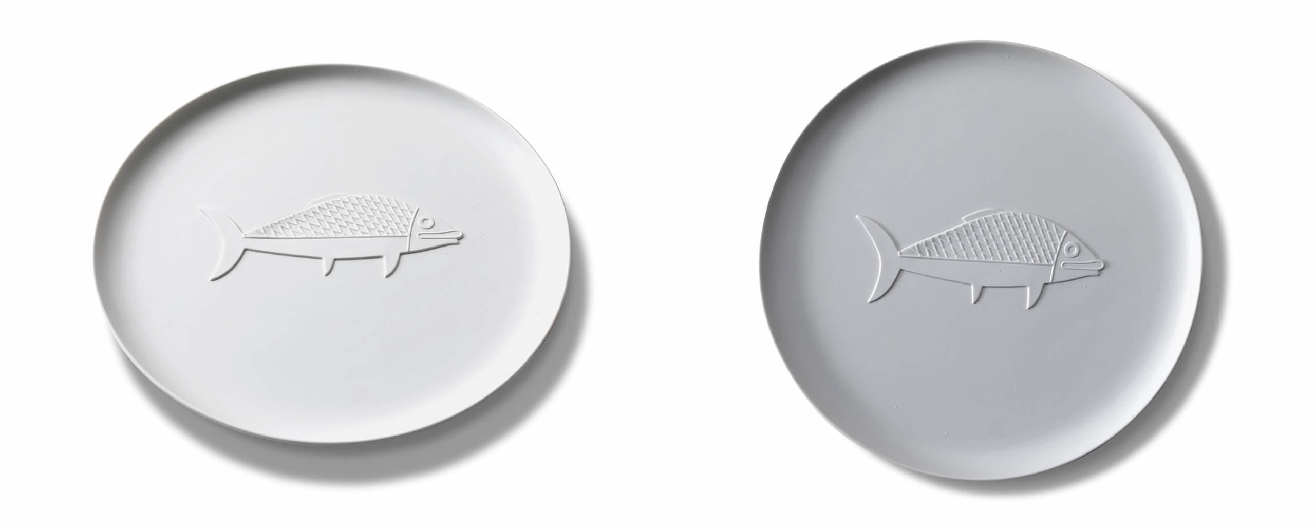 Cassina si ispira al genio di Le Corbusier per una collezione di tre vassoi in porcellana pura non smaltata, che riprendono alcuni simboli in bassorilievo scelti per i muri degli edifici di Chandigarh, la città progettata negli anni ’50, oggi iscritta nella lista del Patrimonio mondiale dell’umanità. Lo stesso procedimento si ritrova a Marsiglia nell’Unité d’Habitation con le sculptures moulées, disegni simbolici fatti imprimere da Le Corbusier nel cemento – béton brut – tratti dal suo repertorio figurativo. Ciascun vassoio, realizzato da Richard Ginori, riporta un soggetto tracciato dal Maestro nel 1956: la mano aperta che rievoca alla pace (vassoio quadrato con gli angoli smussati), il pesce (vassoio tondo), il movimento del sole (vassoio rettangolare).