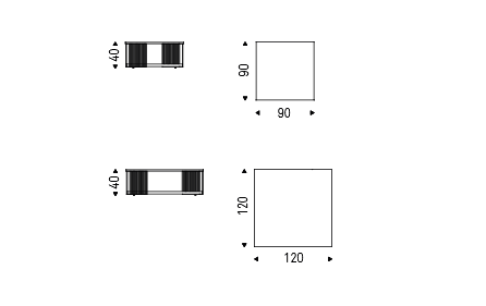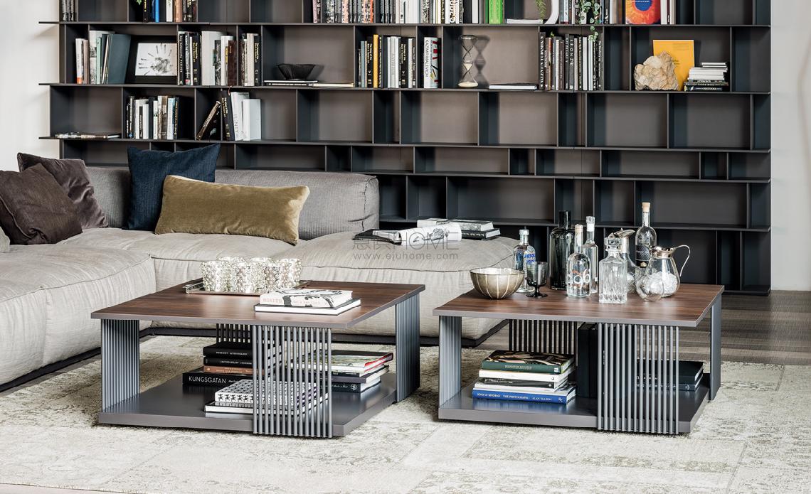 Coffee table with embossed graphite (GFM69) painted steel. Canaletto walnut (NC) upper shelf and embossed graphite (GF69) lacquered lower shelf.