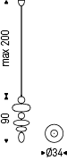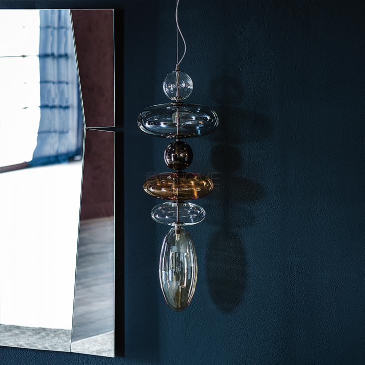 Ceiling lamp with black chrome steel frame (06). Lampshade in transparent, smoked and orange borosilicate glass. Bulb included.