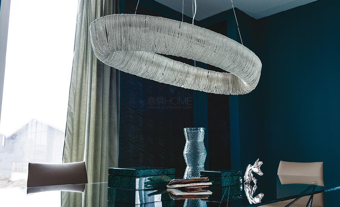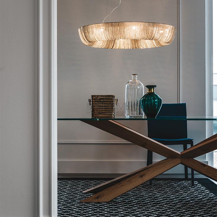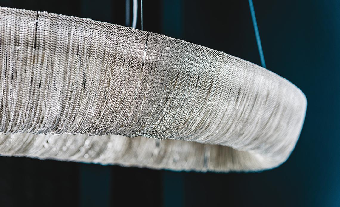 Ceiling lamp with satin Nickel steel frame. Lampshade made up of nickel-plated aluminium chains. Bulb included.