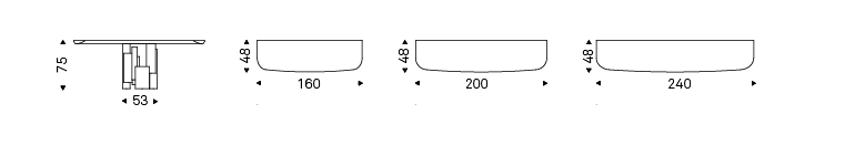 Console with base in titanium (GFM11), graphite (GFM69) or black (GFM73) embossed lacquered steel. Top in Canaletto walnut (NC) with Brushed Grey lacquered and rounded lower profile or elm open pore matt black (OLM73) with Brushed Bronze lacquered and rounded lower profile. Wall anchorage is necessary.