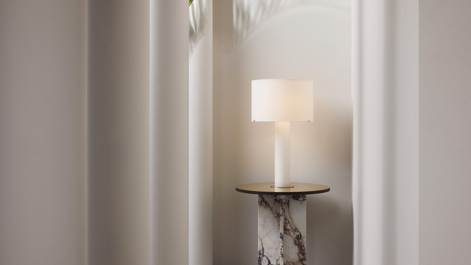 A luxurious and modern version of a traditional table light, using prime materials where the design reflects the light in its entirety and fills the room with a soft glow. Base and shade are made entirely of glass, in which the translucent nature of the material softens and contrasts with the simplicity of the strong lines. The satin brass detailing adds luxury to this contemporary design that reflects the light in its entirety and fills the room with a soft glow. Also available with a classic linen shade.
