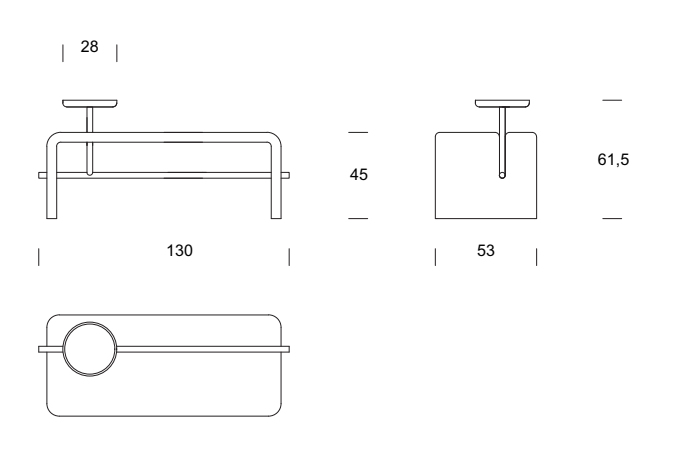 Bench completely covered in leather or fabric characterized by painted metal tubular and solid wood storage tray.