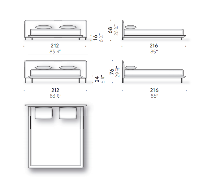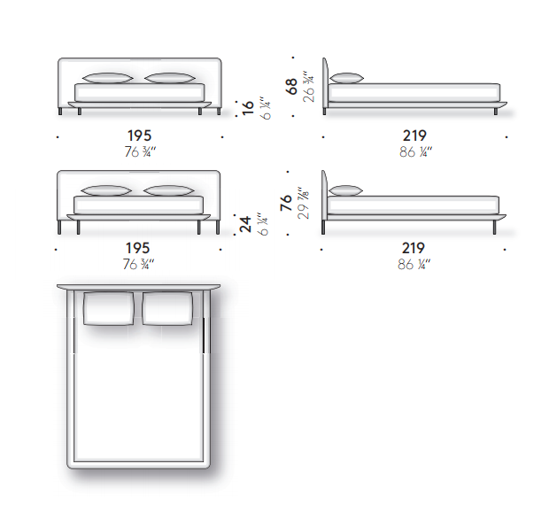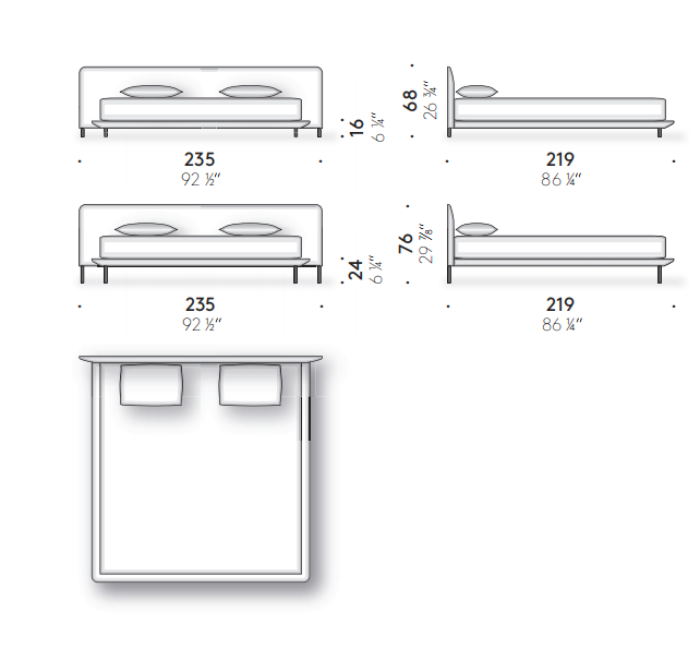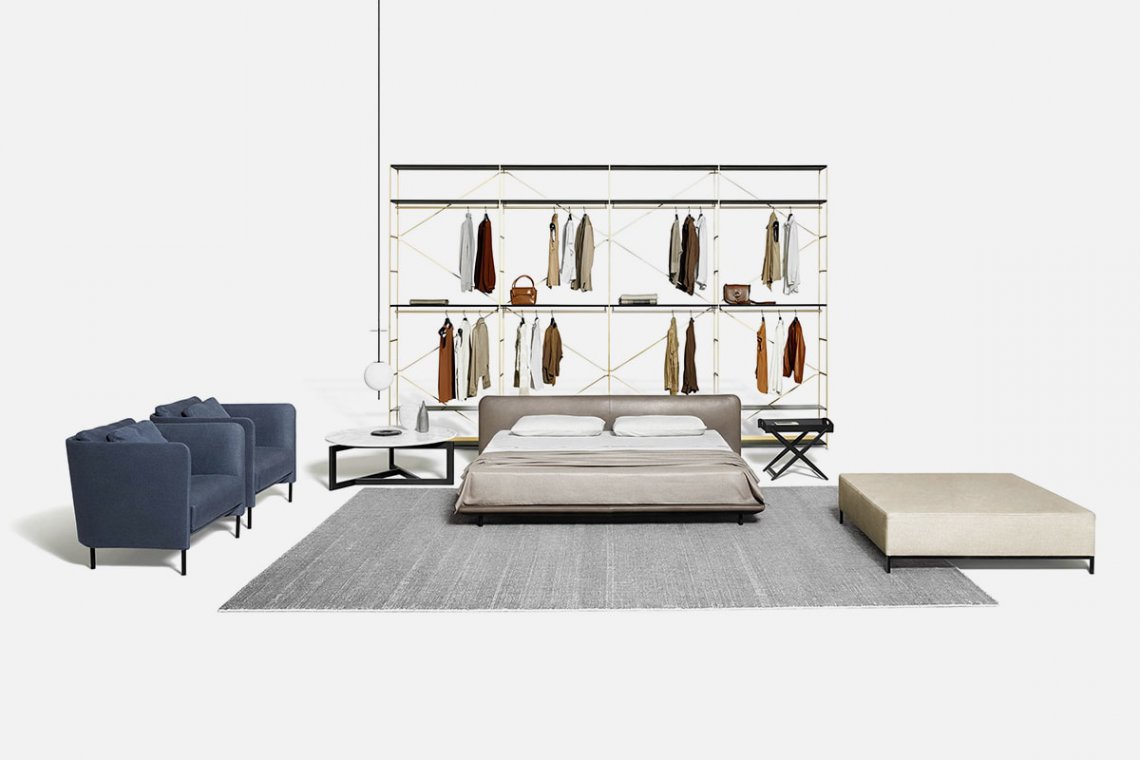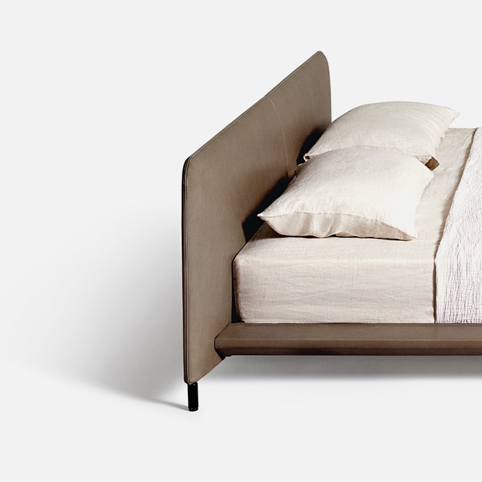 The slim lines of the Blendy collection can also be found in the bedroom. The upholstered bed, a light structure covered in fabric with top-stitching that accents the headboard and bed base, is inviting, versatile and relaxing. Well-balanced and with the right proportions, it blends with any setting, also thanks to the wide assortment of fabrics, textures and colors.