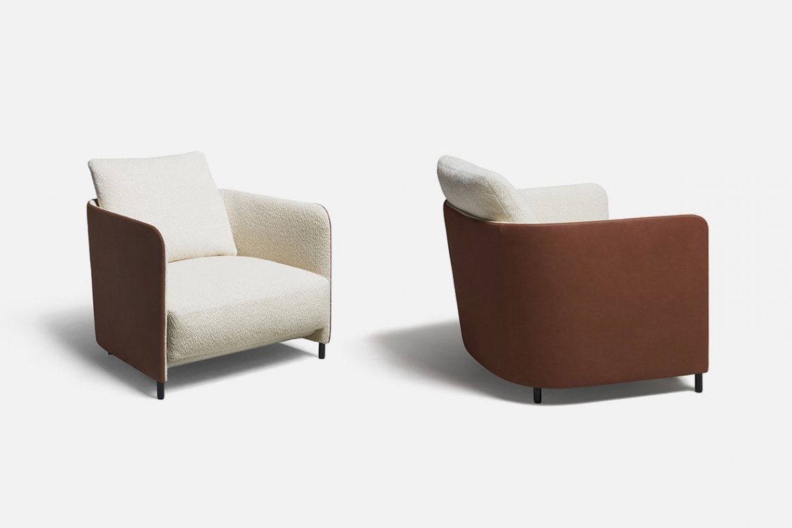 A variation on the theme: the compact and rounded sections of the Blendy collection are completed with a sofa and armchair that have been slightly restyled in the proportions. They have the same line as designed by Omi Tahara, but are distinguished by the height of the seat, the smaller feet and the single cushion. The result is balanced and cohesive.