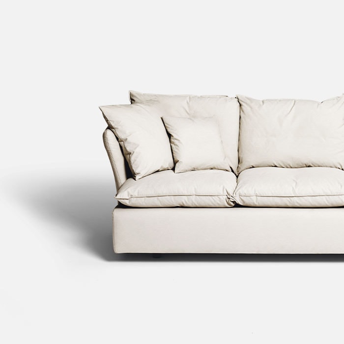 Informal, open, almost spontaneous. The Pillow project by Vico Magistretti features an open structure with slightly inclined armrests and a series of cushions forming the seat and back. Goose down throw pillows, placed here and there, create a cozy, reassuring space. Its expressive aesthetic lends itself to various modular compositions. Pillow is the perfect place for conversing, reading and, above all, relaxing.