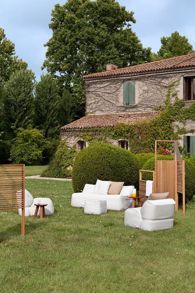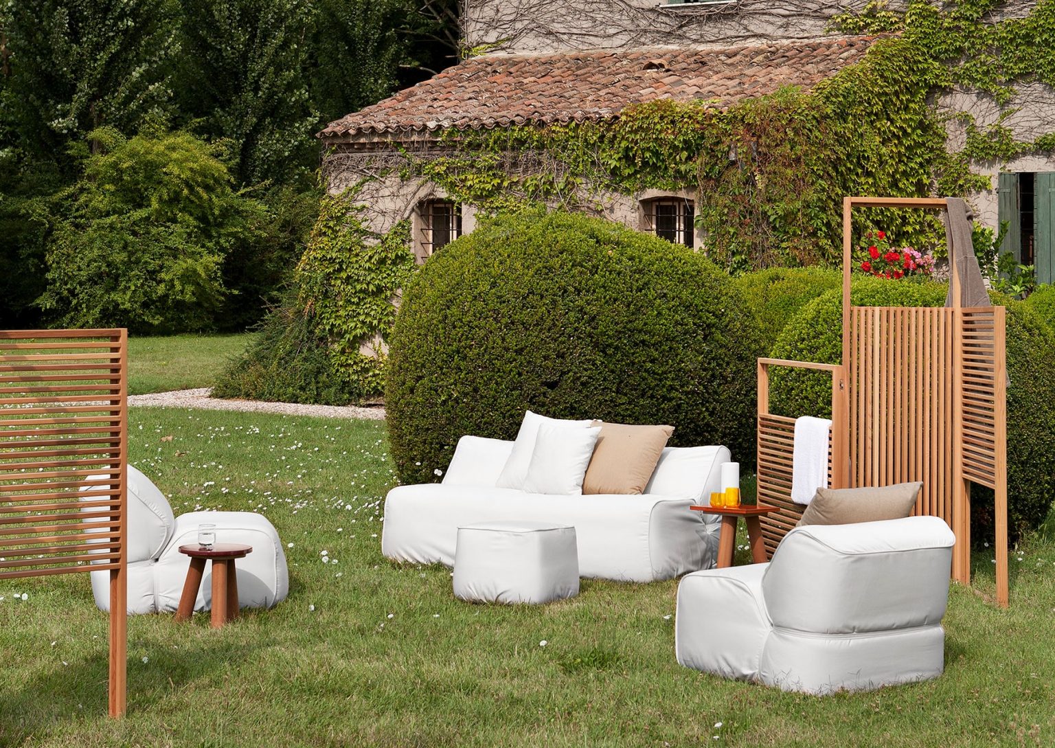 In the landscape of the exterior living composition, Soft Sofa establish new volumes of the outdoor, with wide and longue seat with a soft touch.
