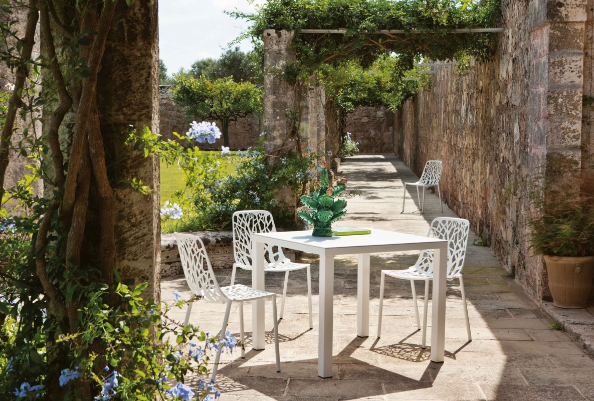 A clean-cut look in its myriad forms: this is the best way to sum up the Easy collection, in die cast and extruded aluminium. Sleek, slimline shapes, which match one another with ease, or with the garden tables and chairs from other collections. The chair and armchair are stackable. Cushions available upon request.
