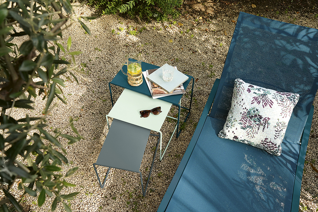 Fermob frappe un grand coup avec ces trois tables d'appoint en métal coloré. Vous rêviez d'une table basse sexy et robuste à la fois ? Fermob en a fait trois ! Comme son nom l'indique, la trilogie de tables basses gigognes OULALA de Fermob se compose de trois tables basses aux formes géométriques et hauteurs différentes.