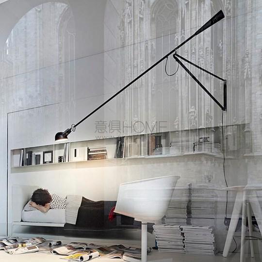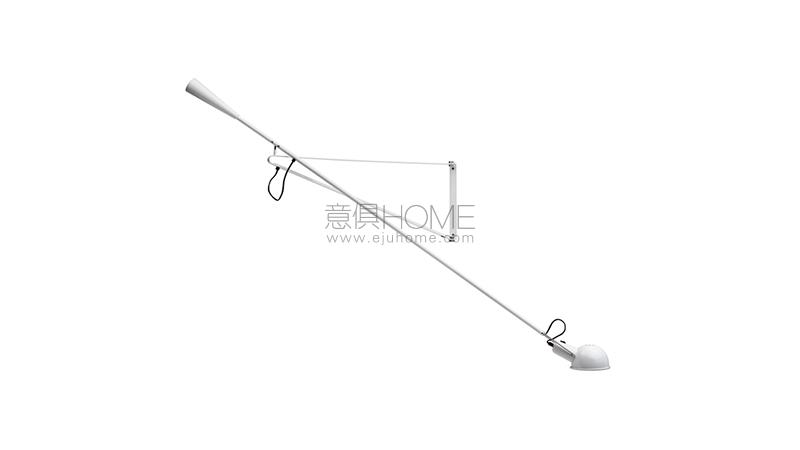 Wall lamp providing direct light. Painted steel adjustable arm and reflector. Chrome-plated brass reflector support. Cast iron tapered counterweight. Painted steel wall fixture.