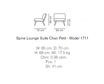 Spine Lounge Suite Petit is a light lounge chair. The generous use of materials is balanced by its discreet design. The accented detailing on the wooden back makes the chair as beautiful standing mid-room as it is against a wall.