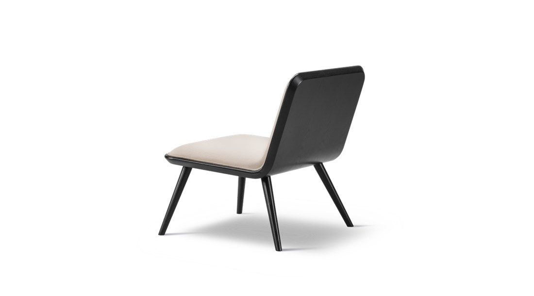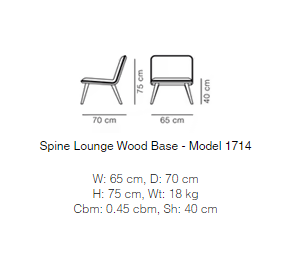Spine Lounge Wood Base is a light lounge chair. The accented detailing on the front upholstered seat in leather or textile combined with a back in oak makes the chair as beautiful standing mid-room as it is against a wall.