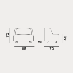 Linee morbide e fascino retrò caratterizzano la famiglia di poltrone MORE, imbottite il poliuretano espanso. Poltrone dallo schienale avvolgente e ampia seduta, hanno il rivestimento sfoderabile con fondo libero e cucitura taglia cuci. I piedini sono realizzati in fusione di allumino lucidato, in noce Canaletto verniciato naturale o faggio laccato bianco, grigio, oceano, tortora o nero.