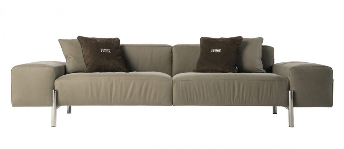 The simplicity given by the linearity of the design is balanced by the refinement of the tailoring, that enhances the link with the world of men's fashion. The decorative inserts of the armrest recall the tailored suits of businessmen and their bags. The contrast between colours and materials - nubuck in a neutral and delicate shade of grey for the upholstery and dark brown leather for the details - gives a strong and modern character to this ensemble with its transversal and sophisticated aesthetic.