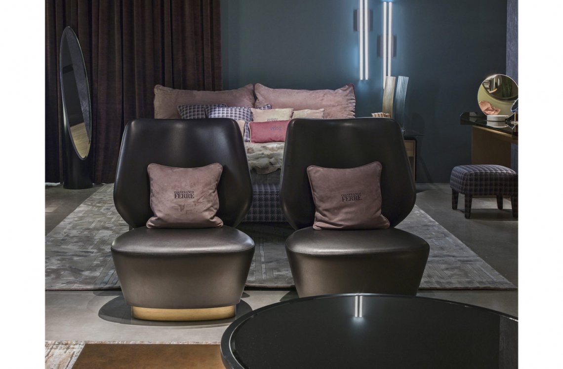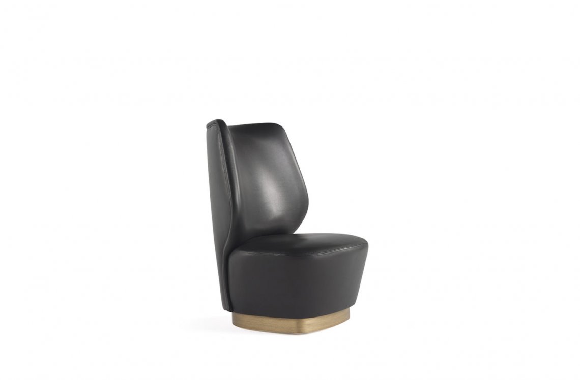 Retro taste and soft and rounded shapes for the Marvila armchair. The refined elegance and compact proportions are enhanced by the base with bronzed finishing, a detail that gives the whole a sophisticated decorative appeal.