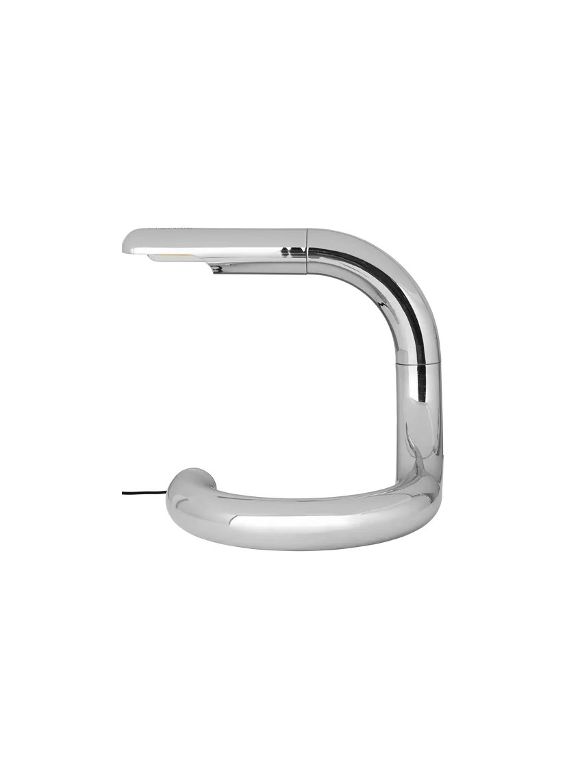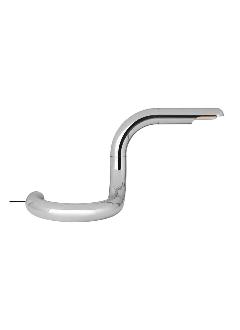 Serpentine in shape, beautifully balanced and gleaming like a jewel, the Aspide Lamp by Gianfranco Frattini is both a brilliantly practical piece of industrial design and an irresistibly playful design statement. First developed in 1970, the Aspide is a highly adjustable table lamp that looks like no other light before or since, but which still expresses the material and aesthetic tastes of its time. The Aspide was designed as a versatile task lamp that can be manually adjusted to create either direct light for work or reading, or turned toward the wall to create a softer, ambient glow; infact the body of the lamp can be manually rotated 350o in both the neck and the head.