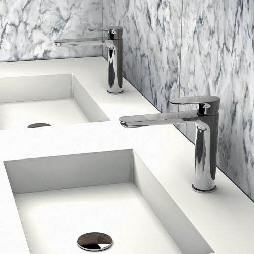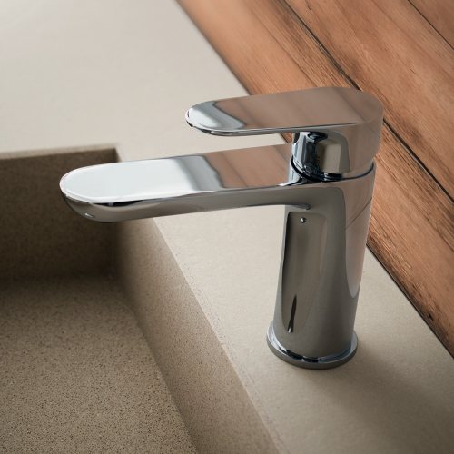 Vik is a series of brass bathroom mixers, available in single-hole and wall-mounted versions. Thanks to the flush aerator the design of the spout is in perfect harmony with the lines of the handle. Moreover, the aerator can be easily removed with a five cents coin for normal maintenance.