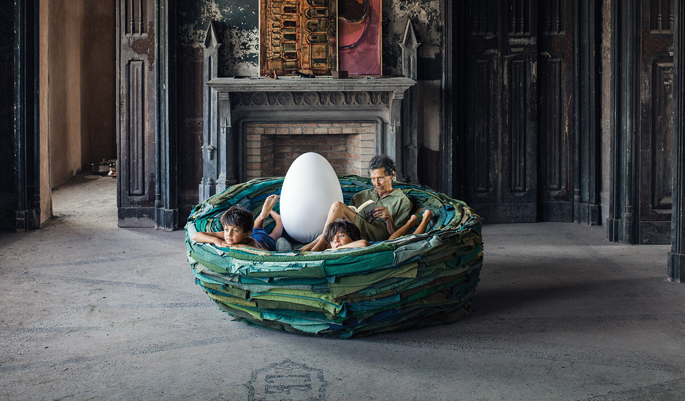 In the collective consciousness what could be more pop and surreal than a human-size nest where one can take shelter and rest? This 1972 masterpiece by Gianni Ruffi, produced by Gufram in limited edition, is not a simple internal design product, but a veritable work of art: La Cova is a place, a space inside which one can feel protected - it is the physical and imaginary dimension of absolute relax. It is the surreal romantic notion of being the next ones able to fly with our own wings - the desire to grow up and be strong enough to face the day in which we can finally fly far away and be free.