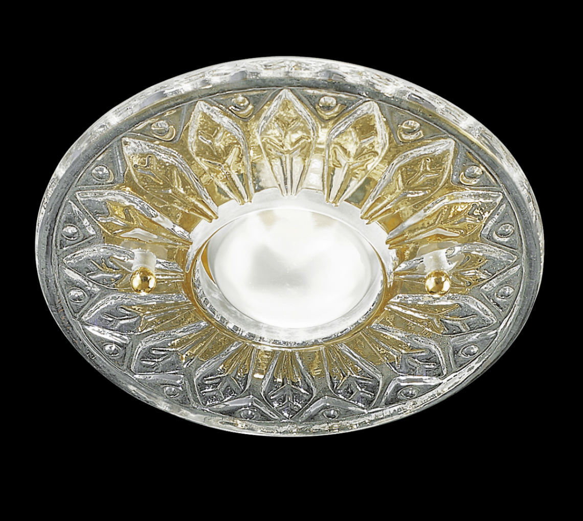 Spotlight in clear glass and metal with shiny gold finish. Available in different colours. Opera Classic Collection.
